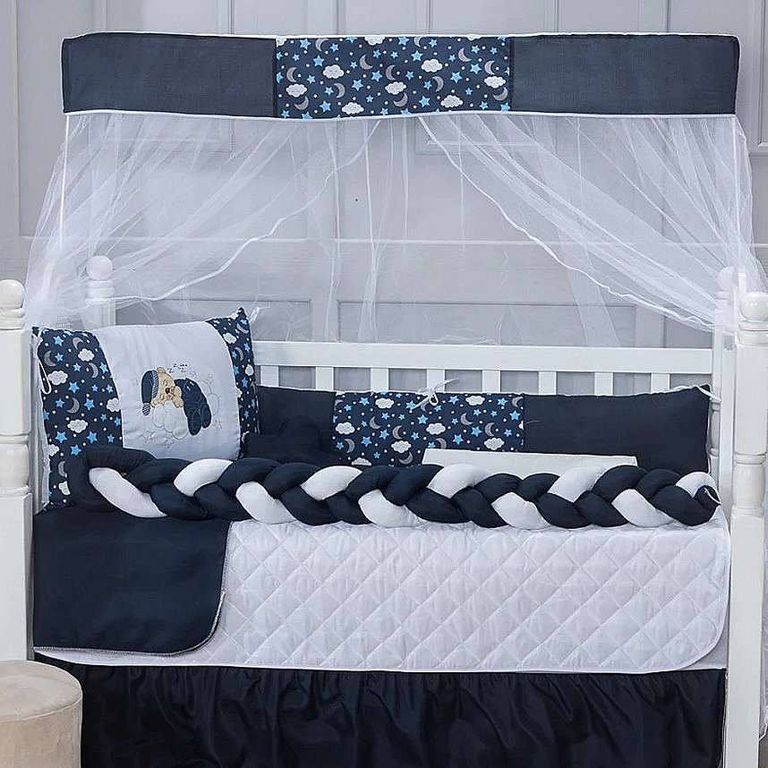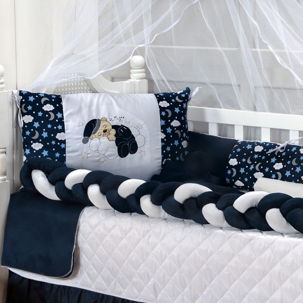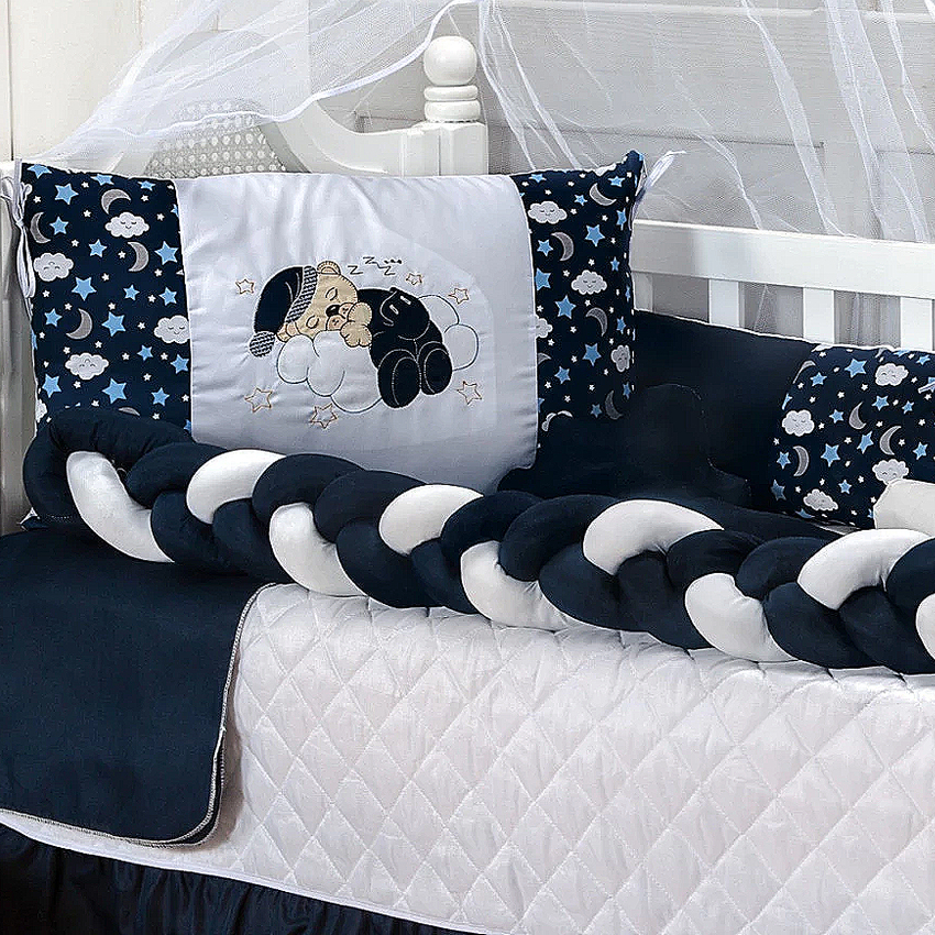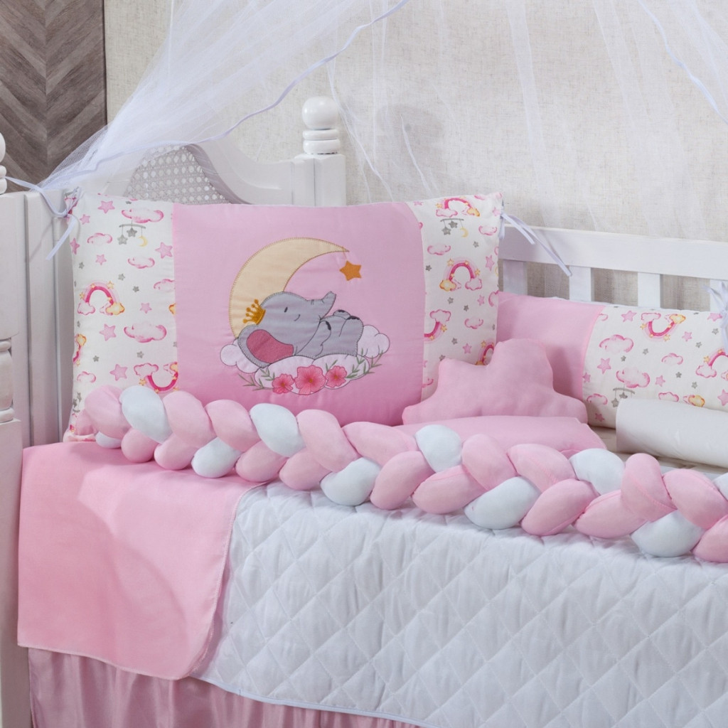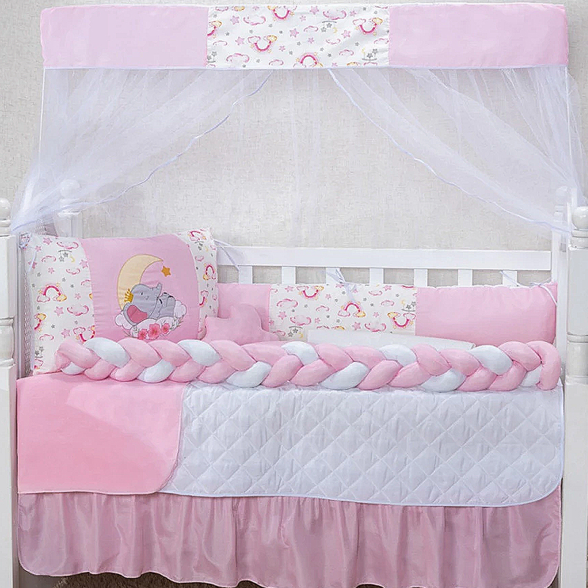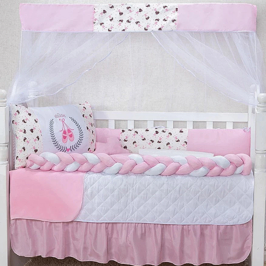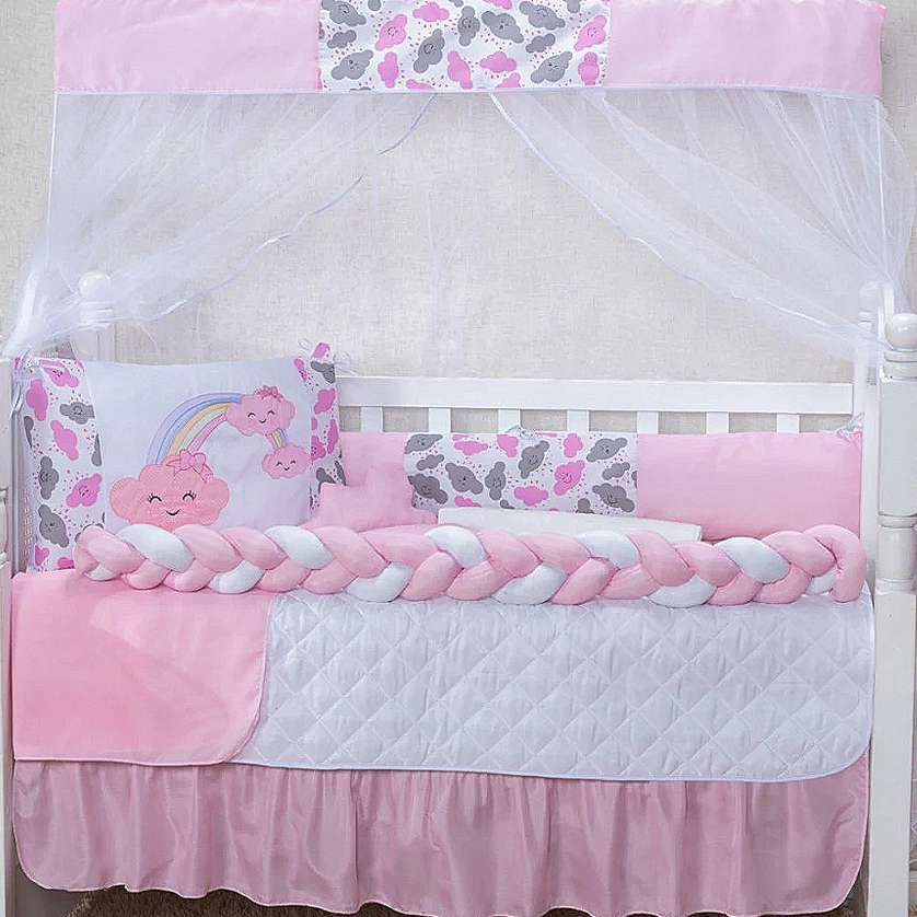 Kit Berço 7 Peças C/ Trança Pop Algodão Americano/Nacional Conforto Decoração Proteção Bebê