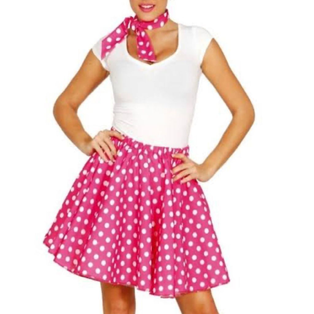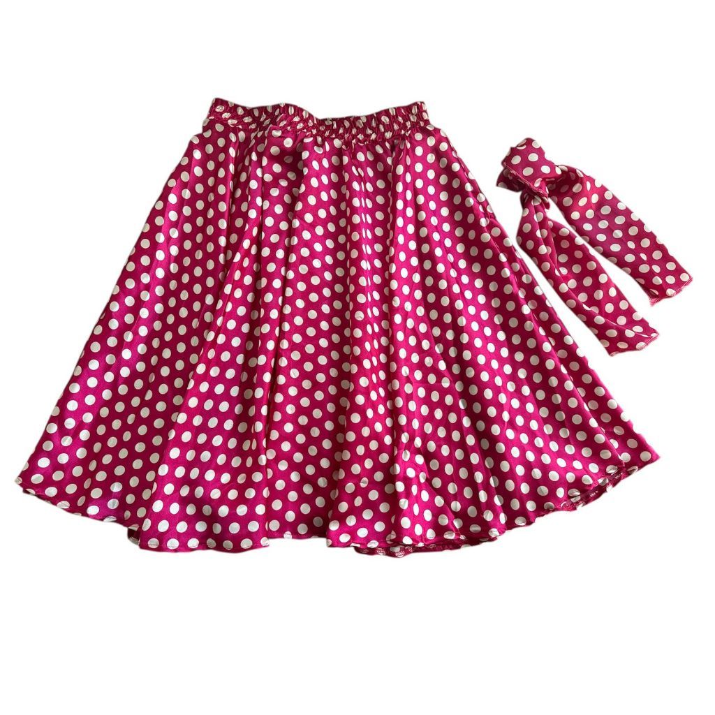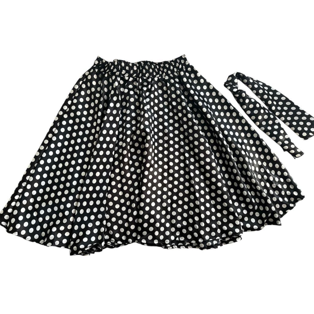 Kit Saia e Lenço de Bolinha Feminina Adulto Anos 60 Retro Godê Rodada Poá Moda Feminina