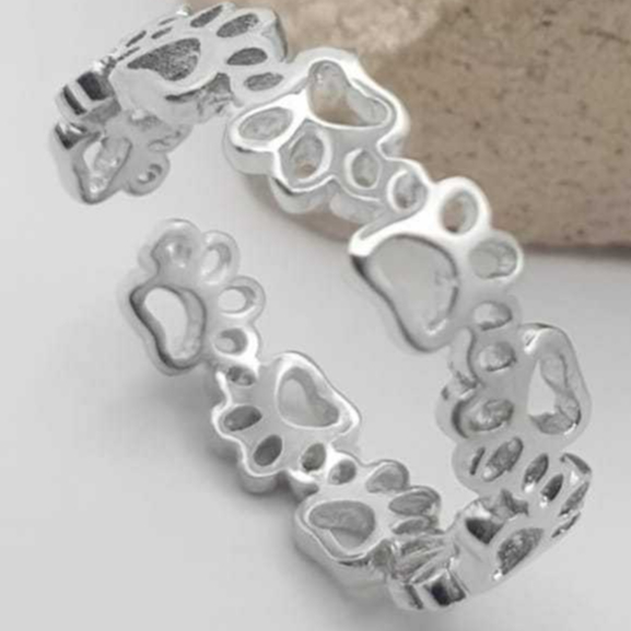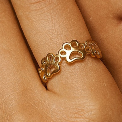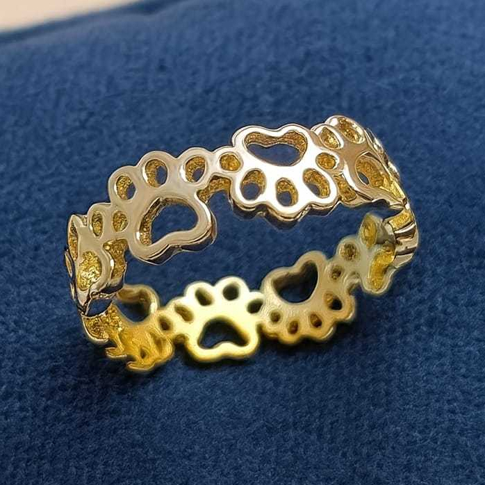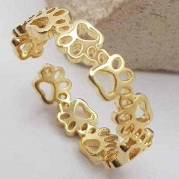 Anel BOB Patinhas, regulável, disponíveis Banhos: Ouro18K, Prata 925 | Linha Pet