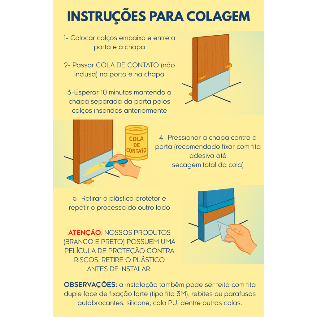 Protetor Salva Porta 3,5x10cm Madeira/Branco/Preto/Galvanizado Pintura Eletrostática
