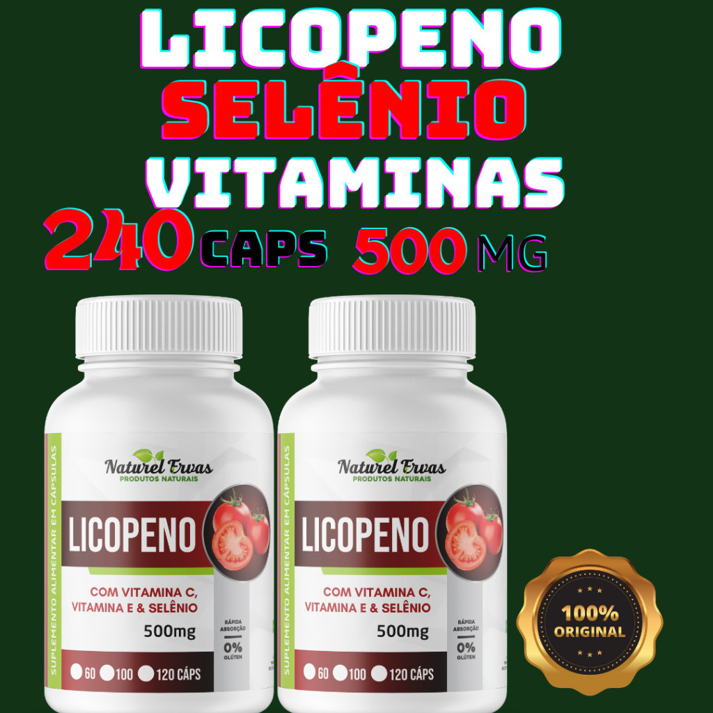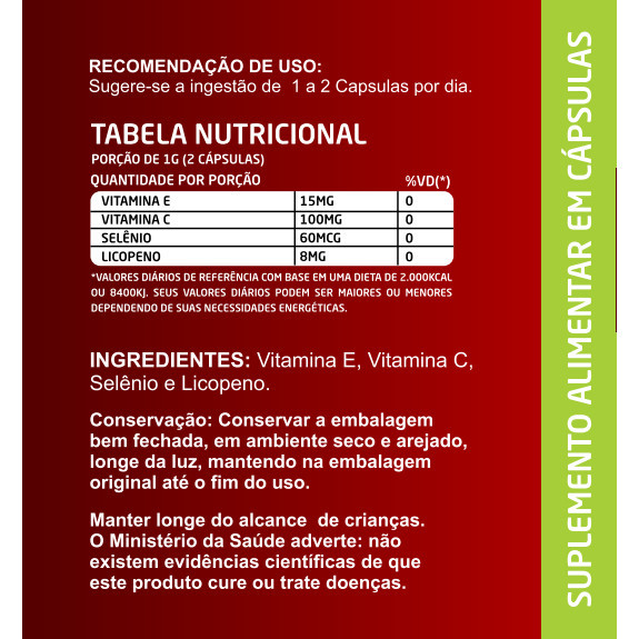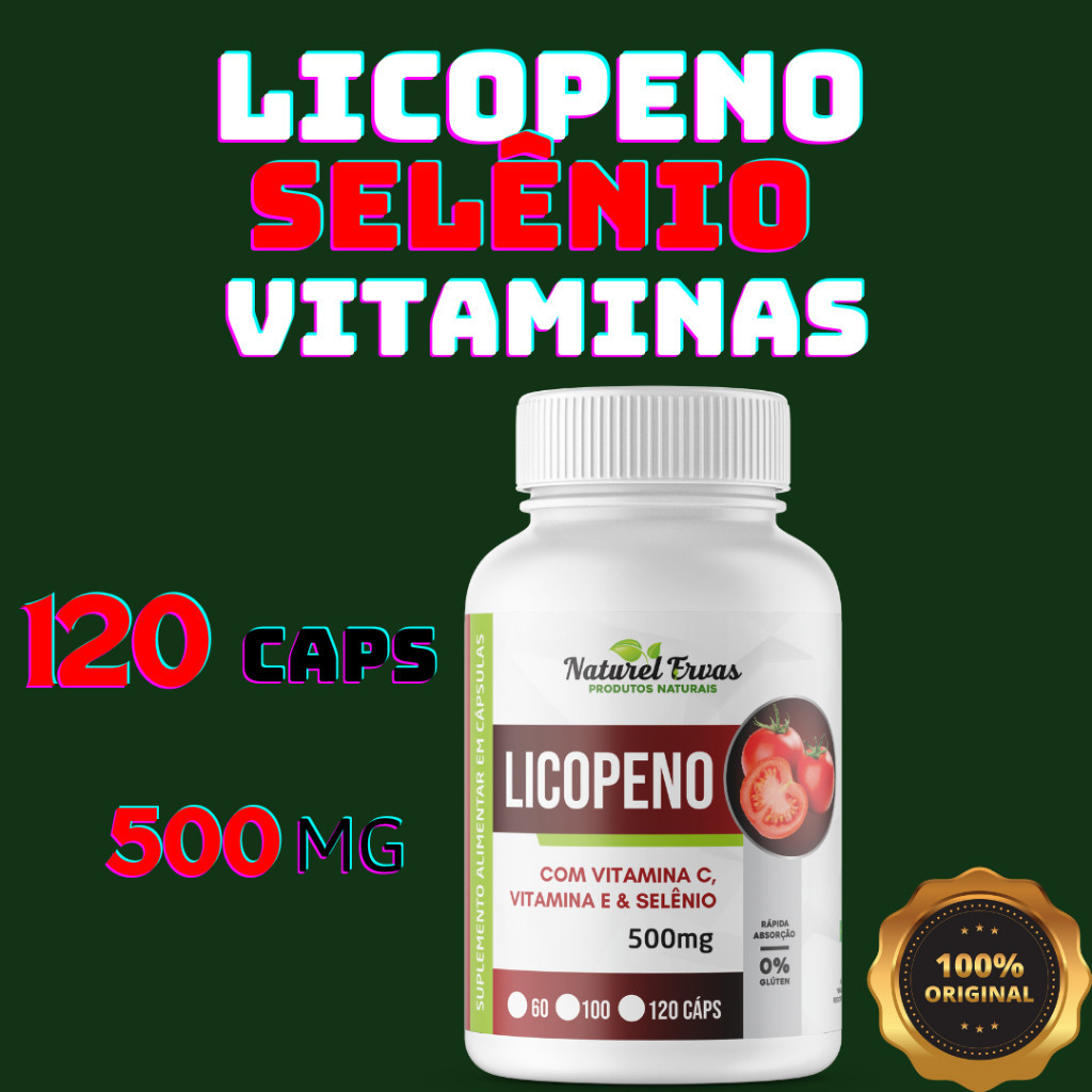 Licopeno + Vitaminas C e E + Selênio 120 caps com 500mg
