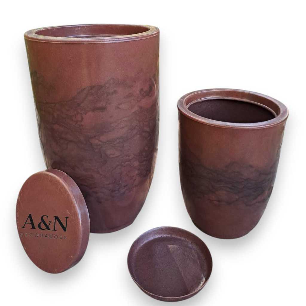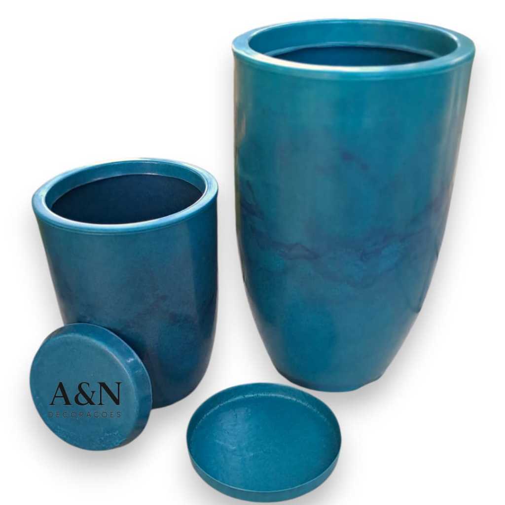Kit 2 Vasos Cone Bojo Polido N1 e N2 Polietileno Para plantas Decorativo Marmorizado Luxo Moderno
