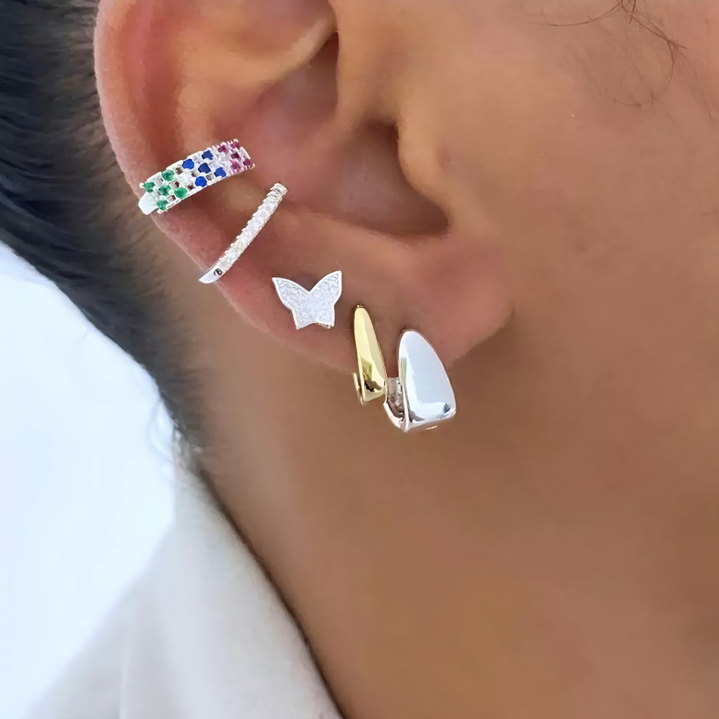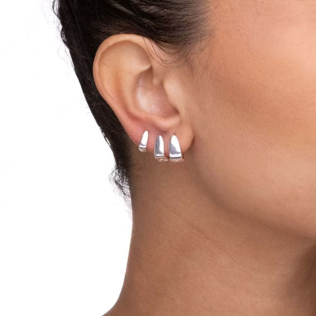 Trio Brinco Argola Click Prata 925 Triangular