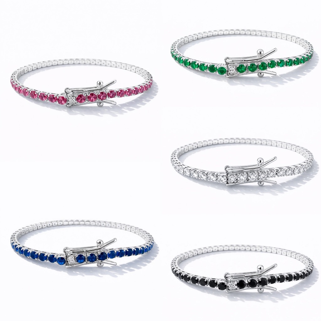 Pulseira Riviera Luxo Zircônia Colorida | Banhada a Ouro/Prata | Base em Cobre | Fecho Seguro Feminina