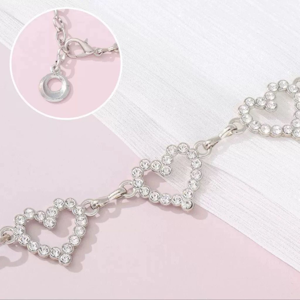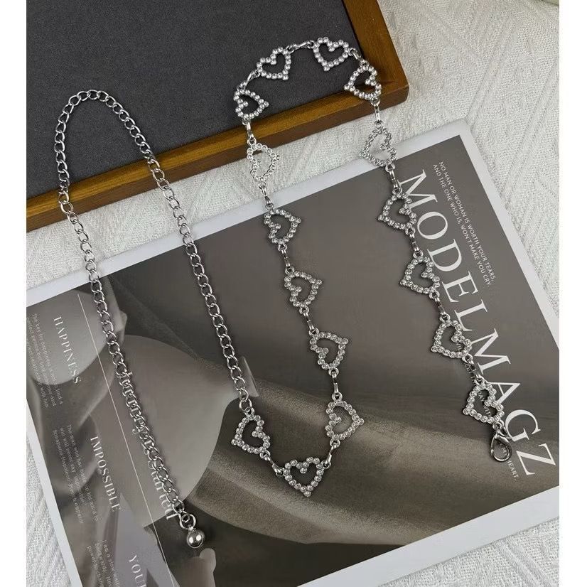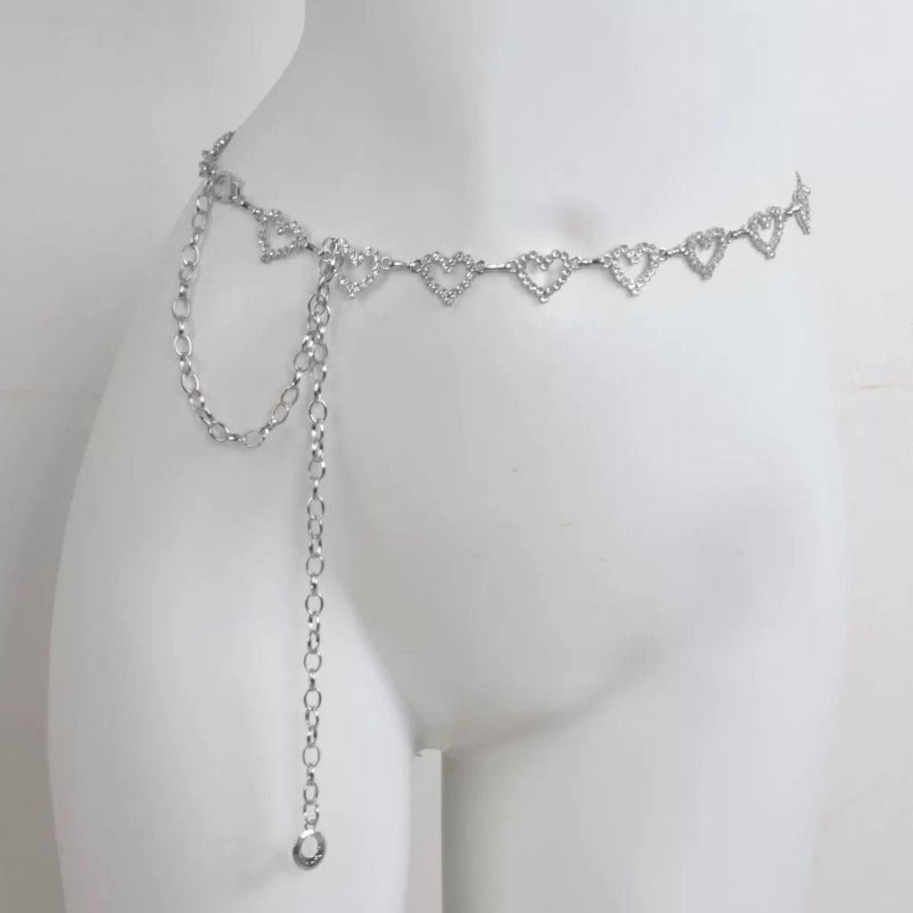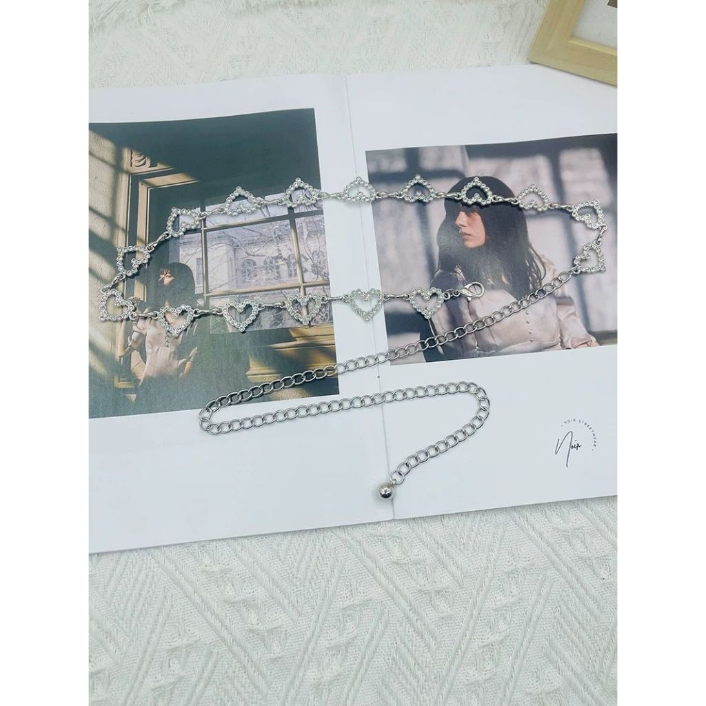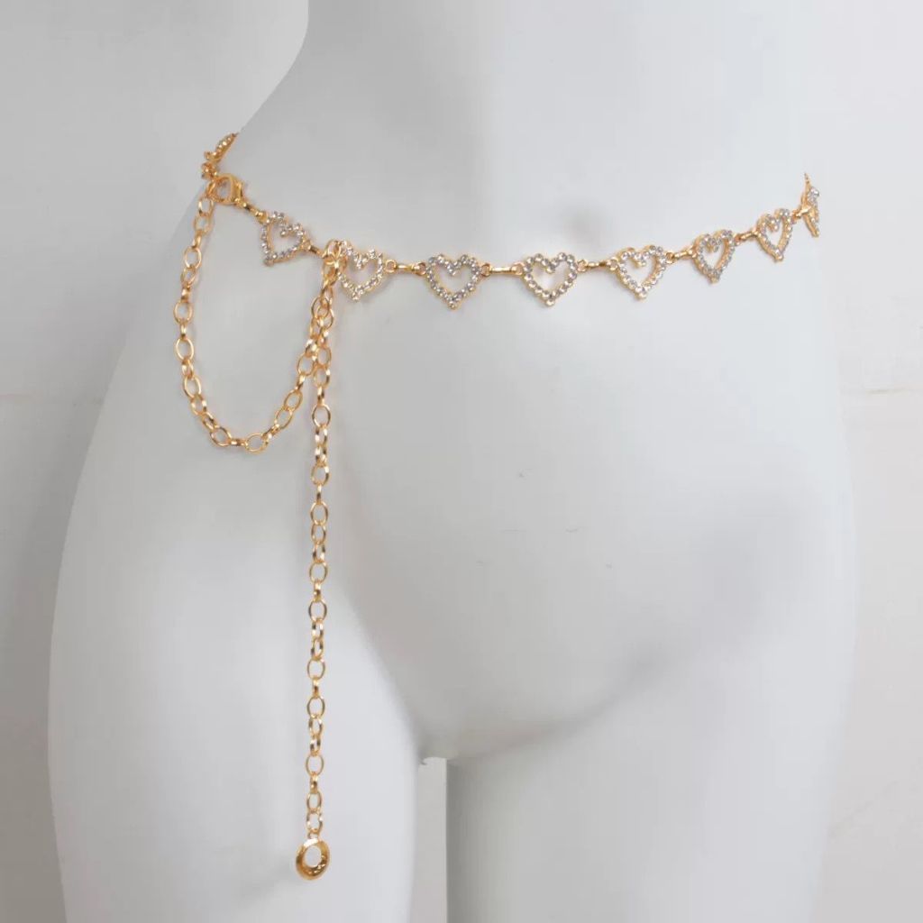 Cinto feminino corrente de festa coração de metal brilhante com diamantes