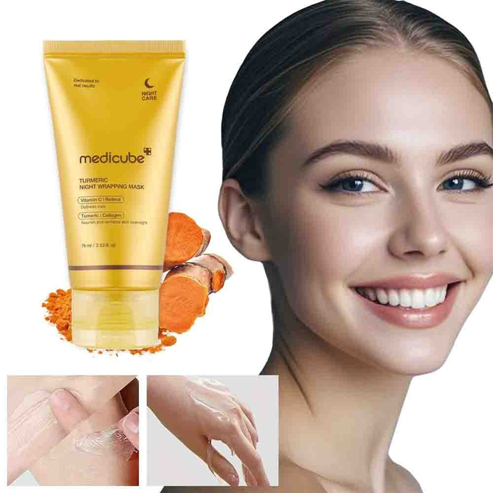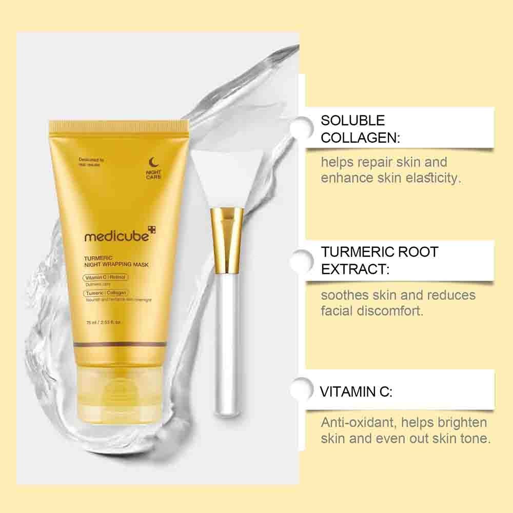 75ml MEDICUBE Ácido Kójico Cúrcuma Máscara De Embrulho Noturno + Pincel De Retinol De Vitamina C