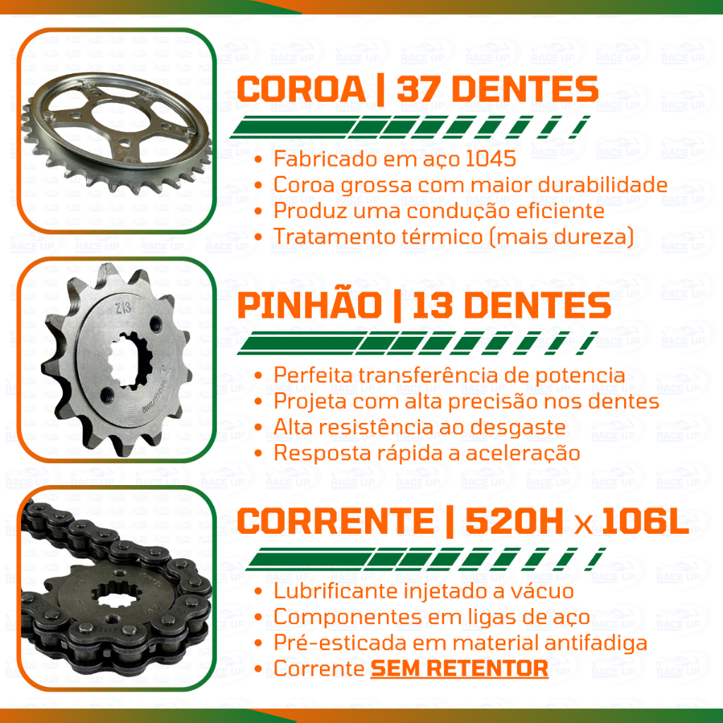 Relação Cbx 250 Twister 2001 a 2008 Kit Transmissão Aço 1045