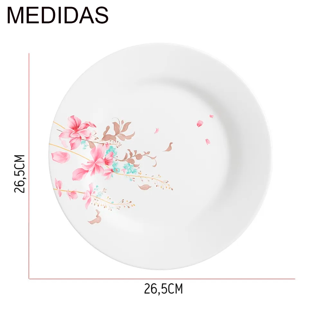 Aparelho de Jantar Jogo de 6 Pratos Raso Vidro Branco Flowers Bord 25cm Decorado Restaurante Buffet