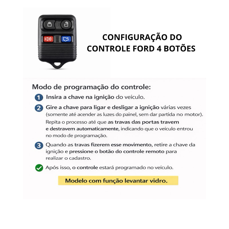 Controle Alarme Ford Fiesta Ka Ecosport 4 Botões Completo COM BATERIA