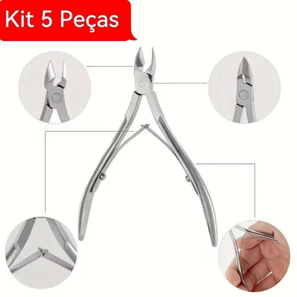 Kit 5 Alicate de Aco Removedor de Cutícula Cortador de Unhas Ferramenta de Manicure