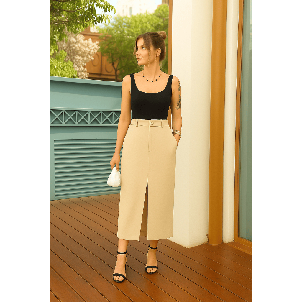 SAIA MID EVANGÉLICA EM ALFAIATARIA PREMIUM SAIA MIDI LONGA ELEGANTE E SOCIAL