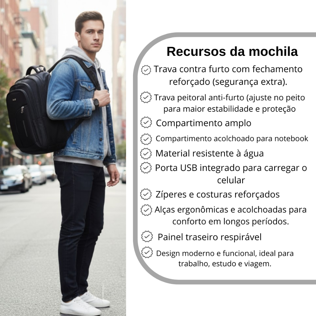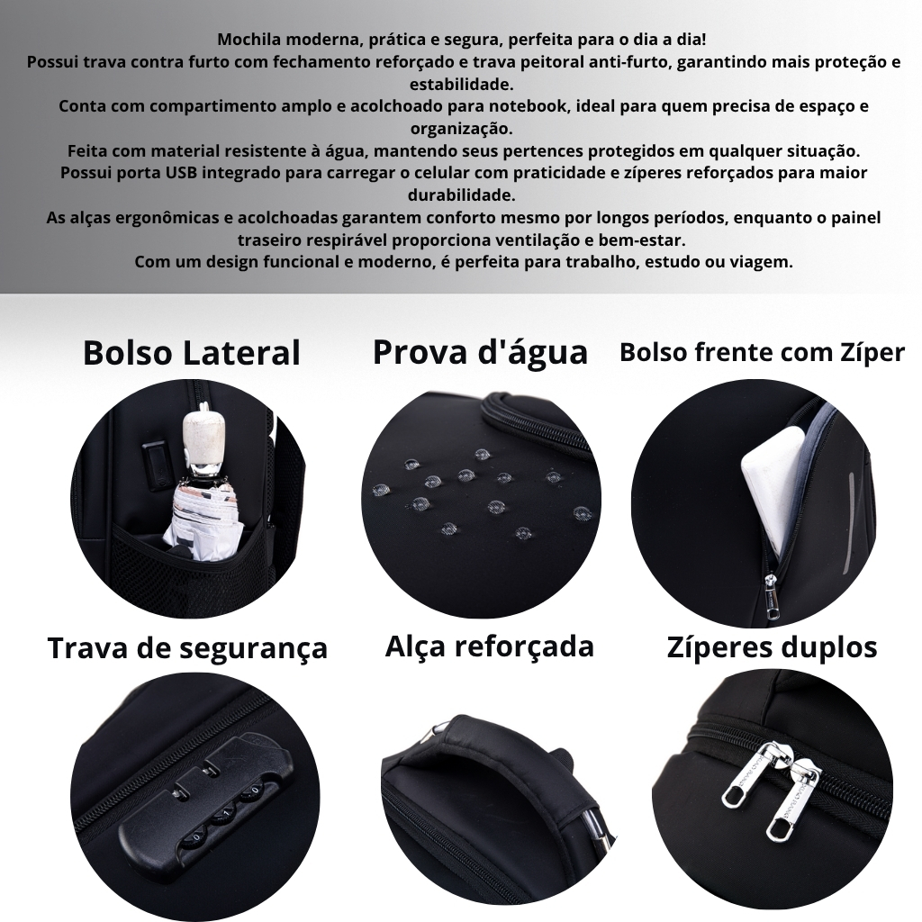 Mochila Xiaobang Zíper Bolsa Prova D'água Com Alça Reforçada Painel Traseiro Respirável 40L