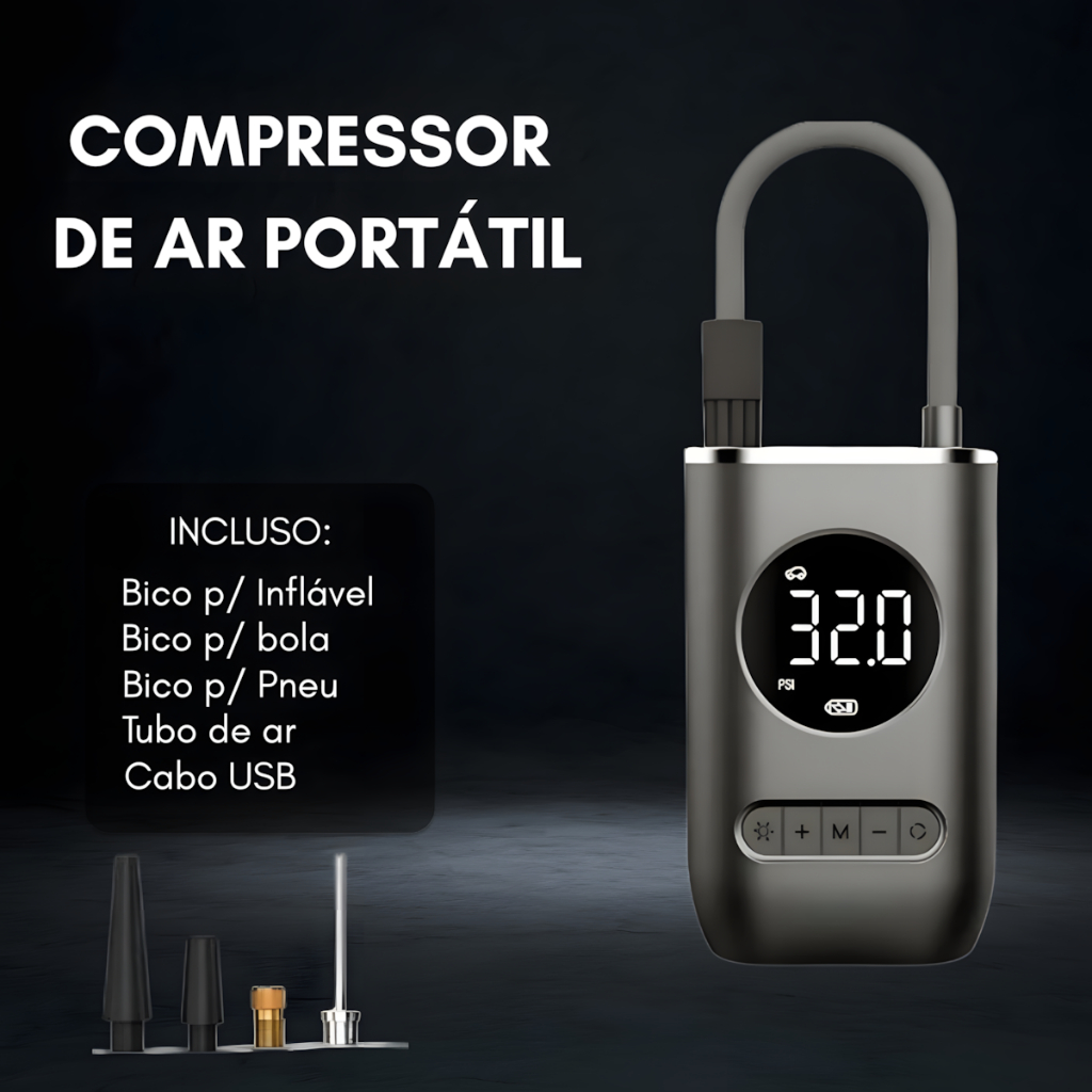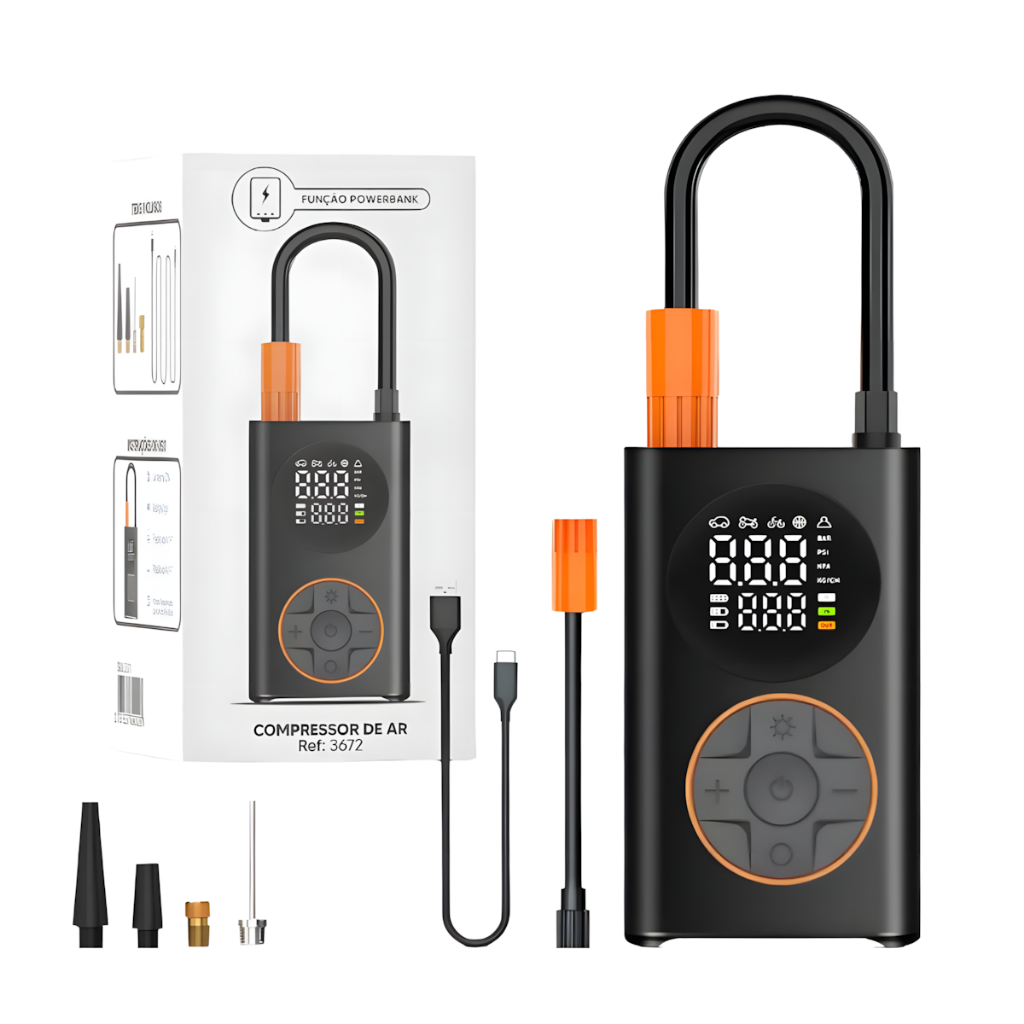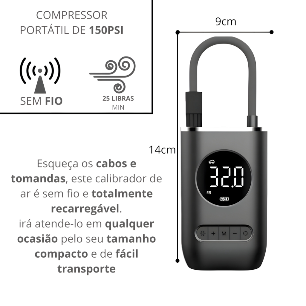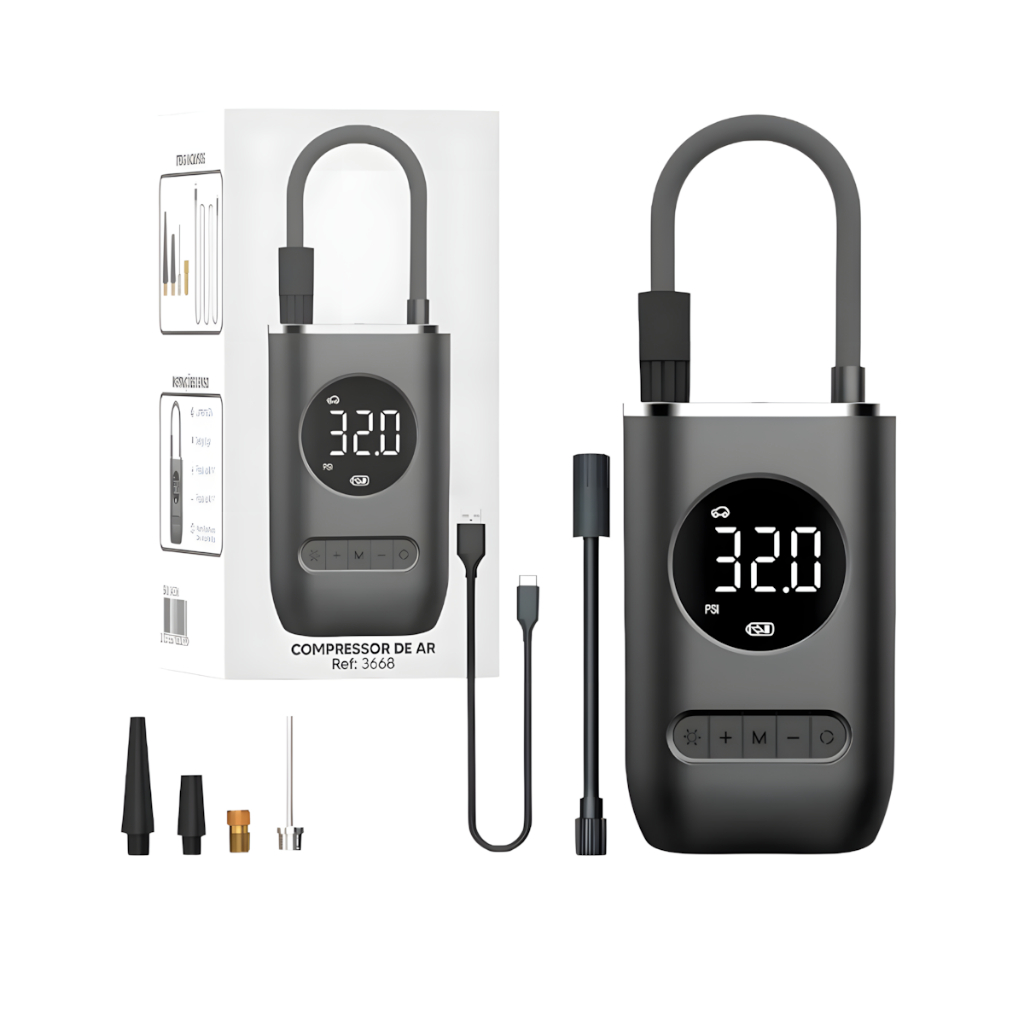 Mini Compressor De Ar Potente Portátil 130 PSi Carros E Van Cor Preto Frequência 120 110V/220V