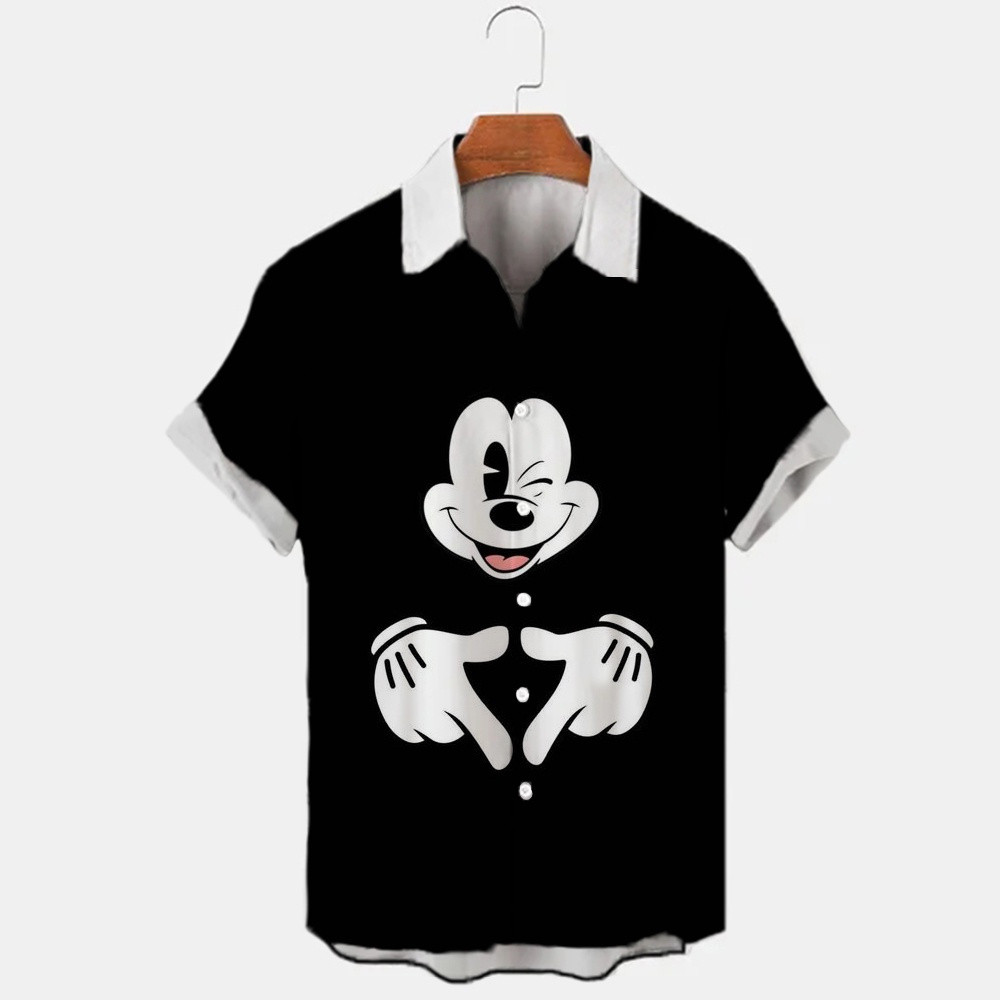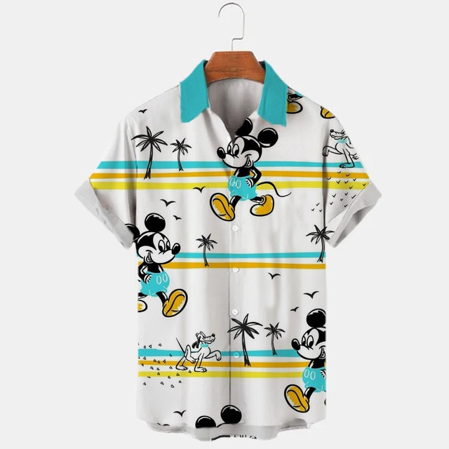 Disney Mickey Mouse Pato Donald Camisa Havaiana Masculina Casual Viagem Praia Lapela De Manga Curta Único Breasted Marca