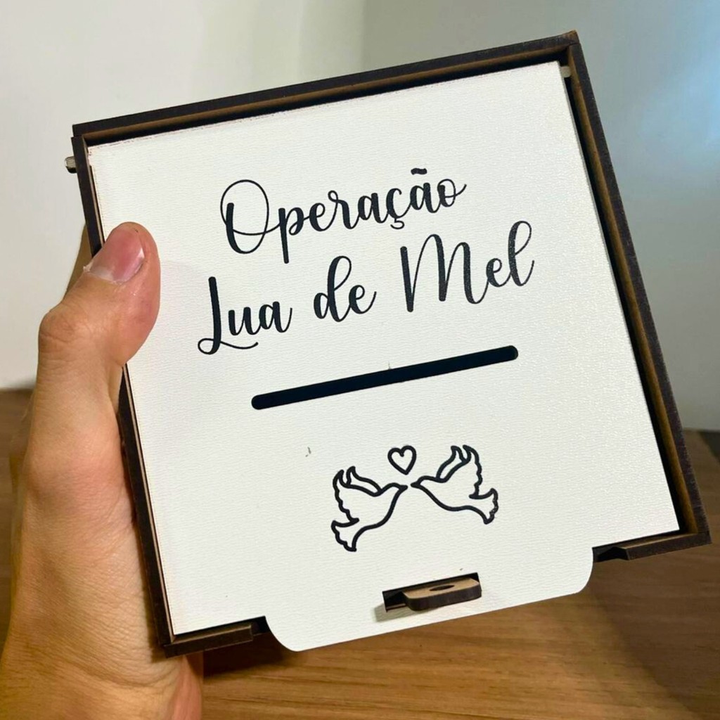 Caixa Cofre PIX Casamento Personalizada MDF | Iniciais do Casal | QR Code Pronto