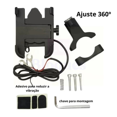 Suporte De Celular De Liga De Alumínio Moto E Bike Giratório Com Carregador