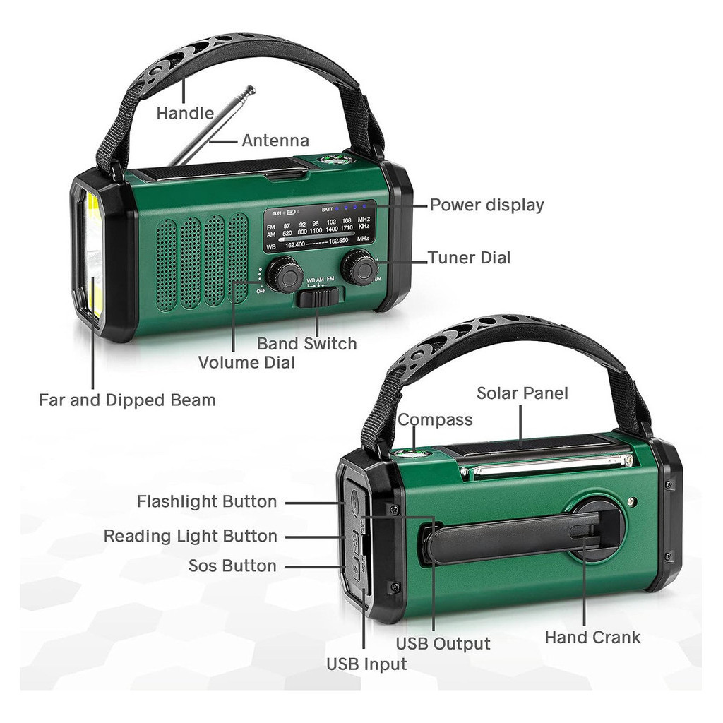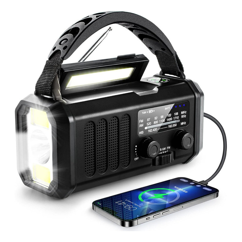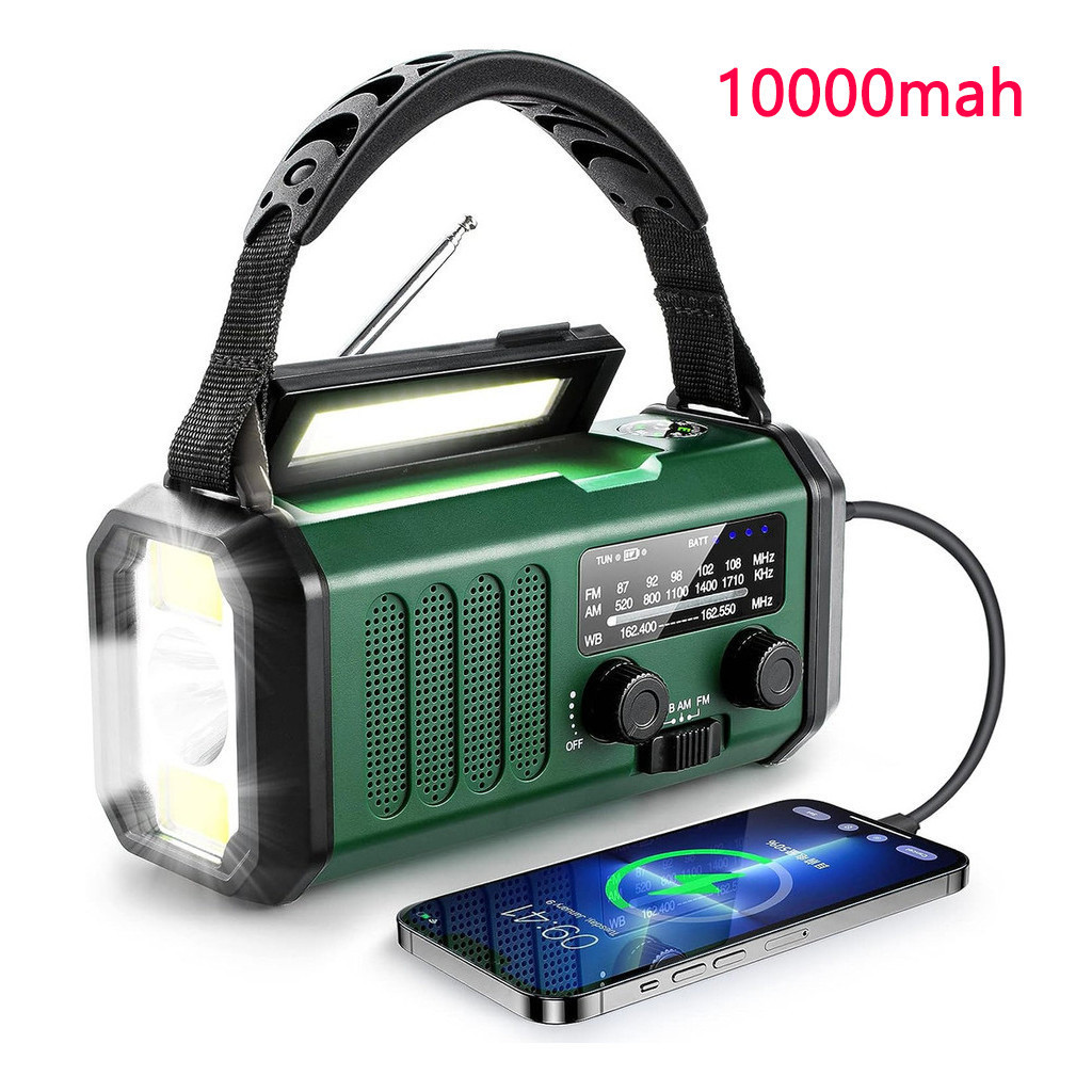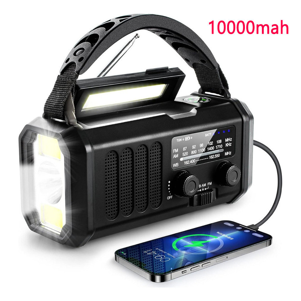 Multifuncional Rádio De Emergência Solar, Rádio De Manivela, Rádio AM/FM Tempo, 10000mAh, Carregamento Tipo C