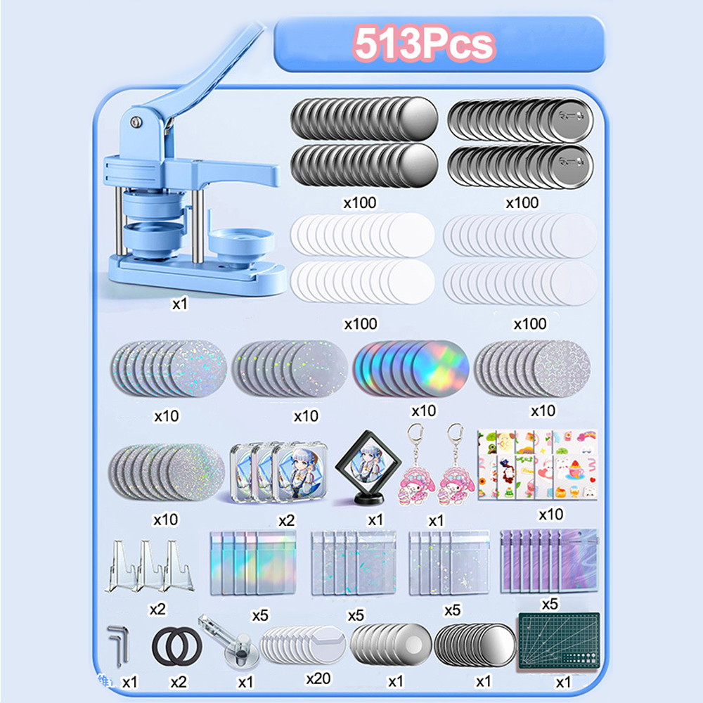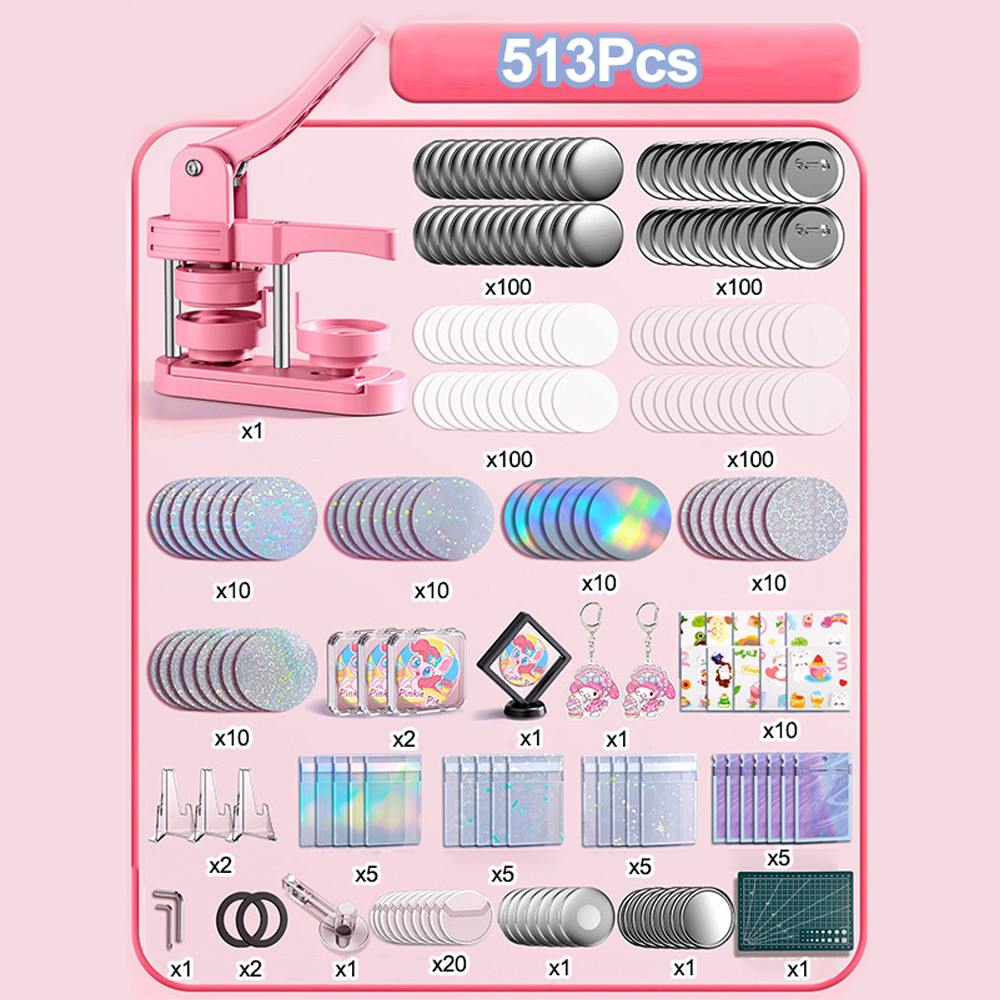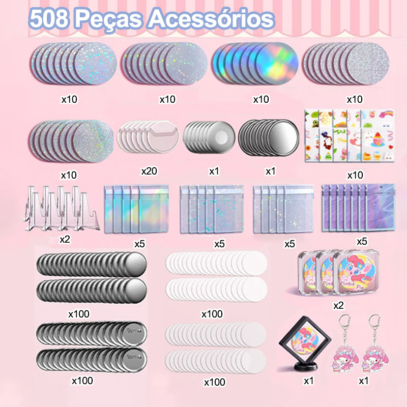 Kit Máquina de Fazer Botões Personalizados Criação de imã de Geladeira 58x58mm+513 Pecas Acessorios