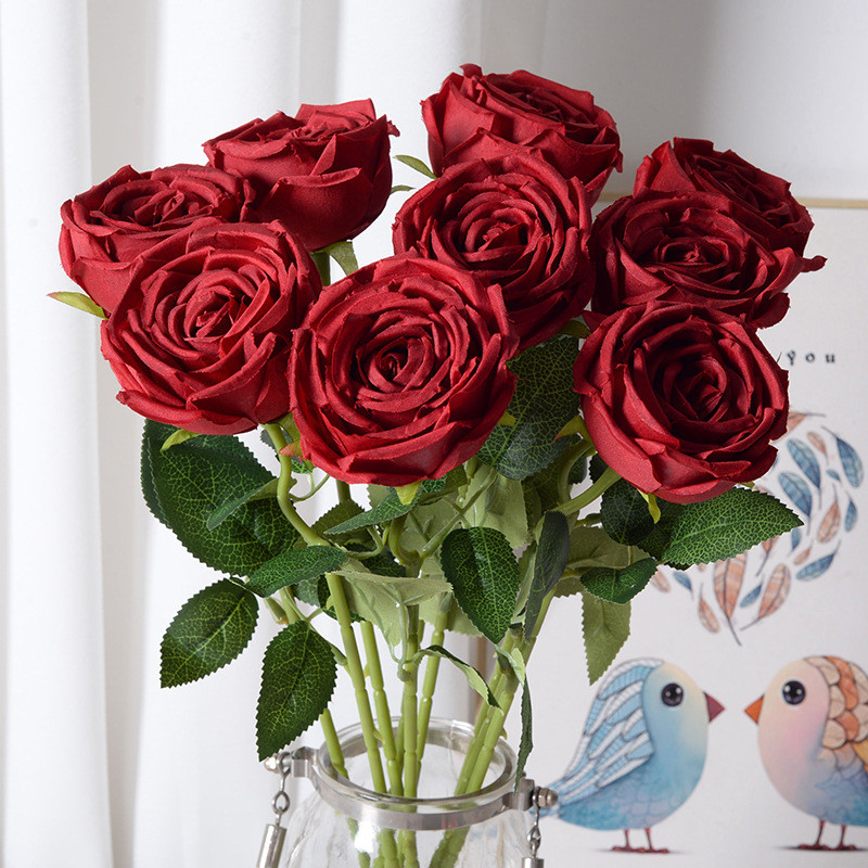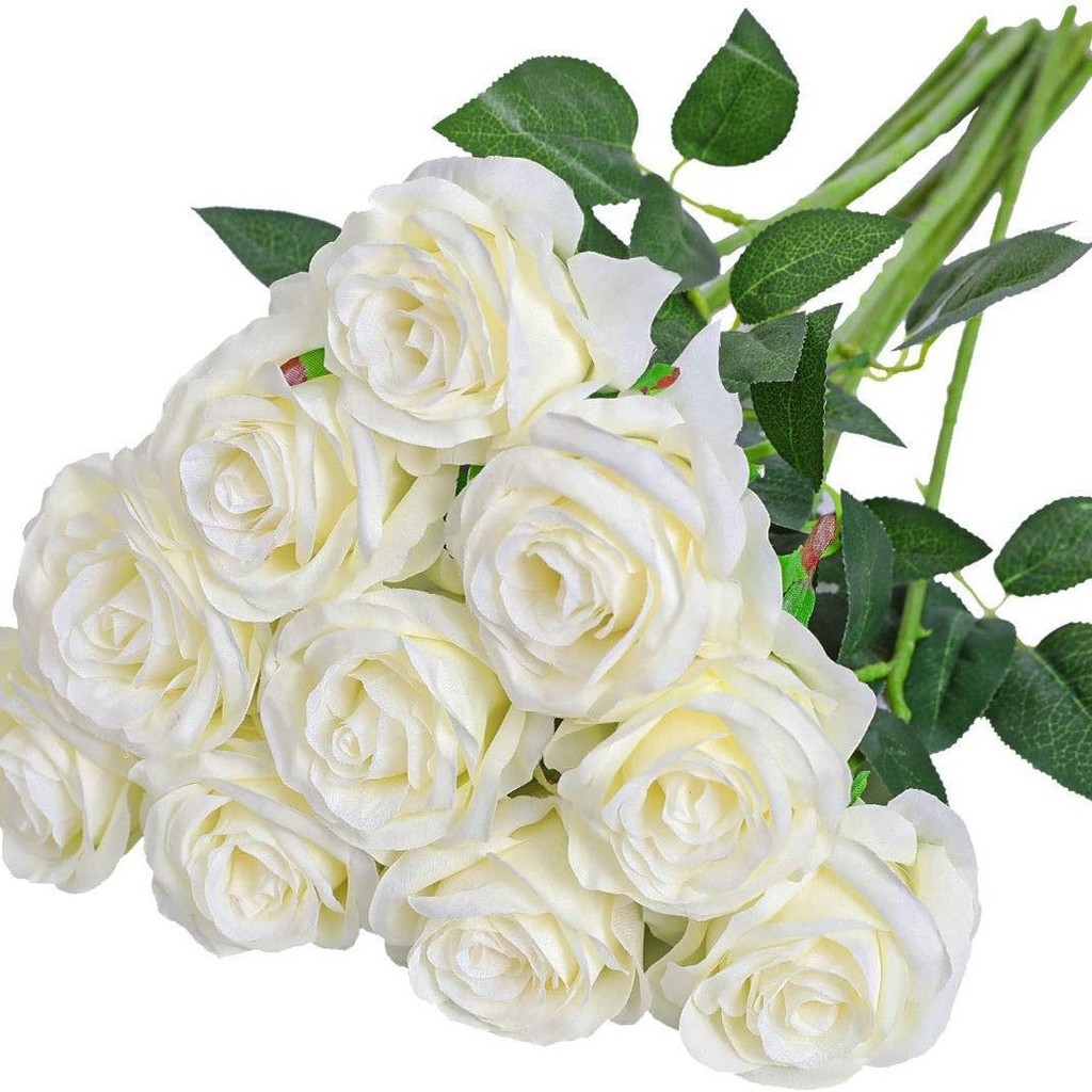 10 Peças Rosas Artificiais Toque Real - Decoração para Festa Natal, Buquê de Casamento e Casa