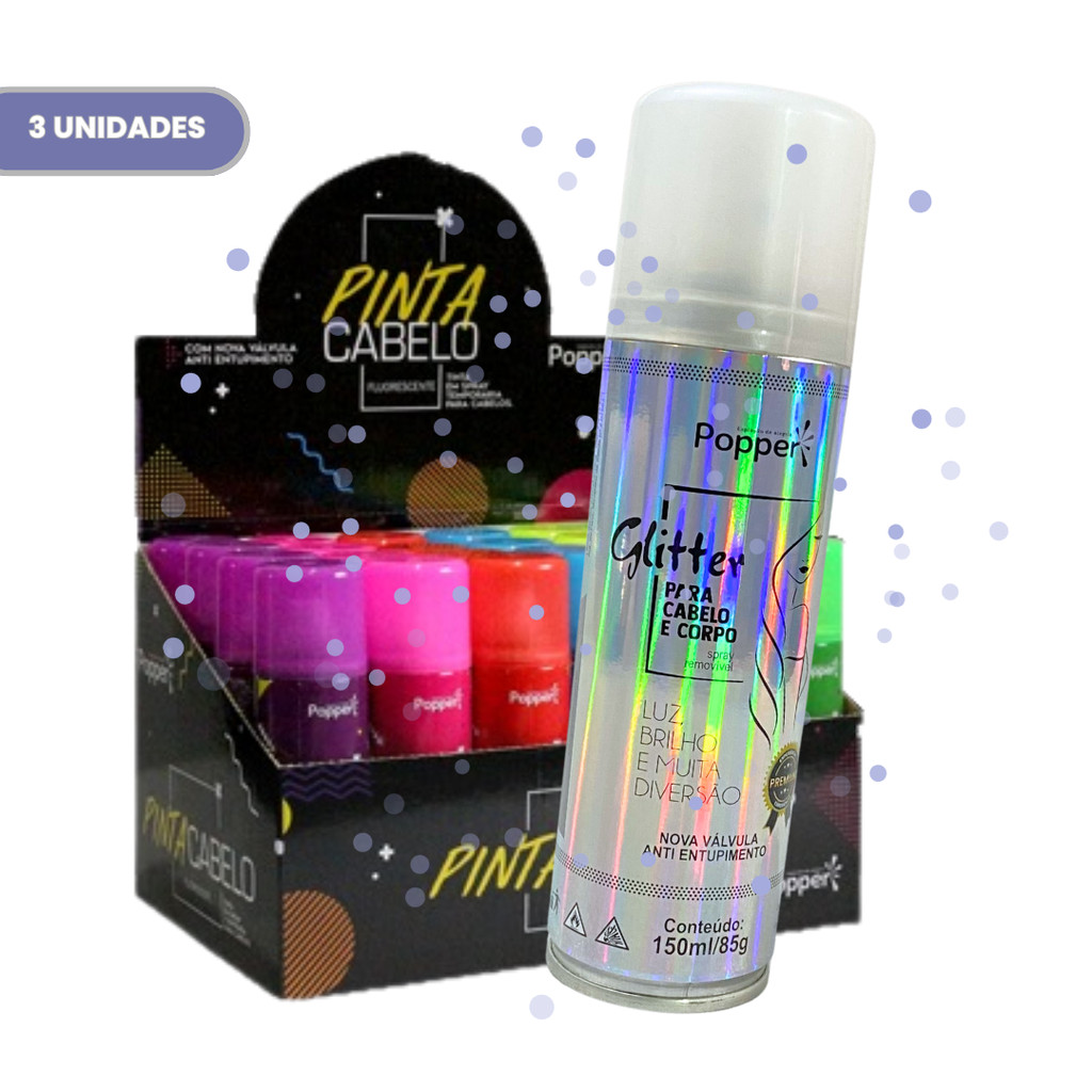 Kit 3 Spray Glitter Cabelo Corpo Roupa Furta-cor Holográfico