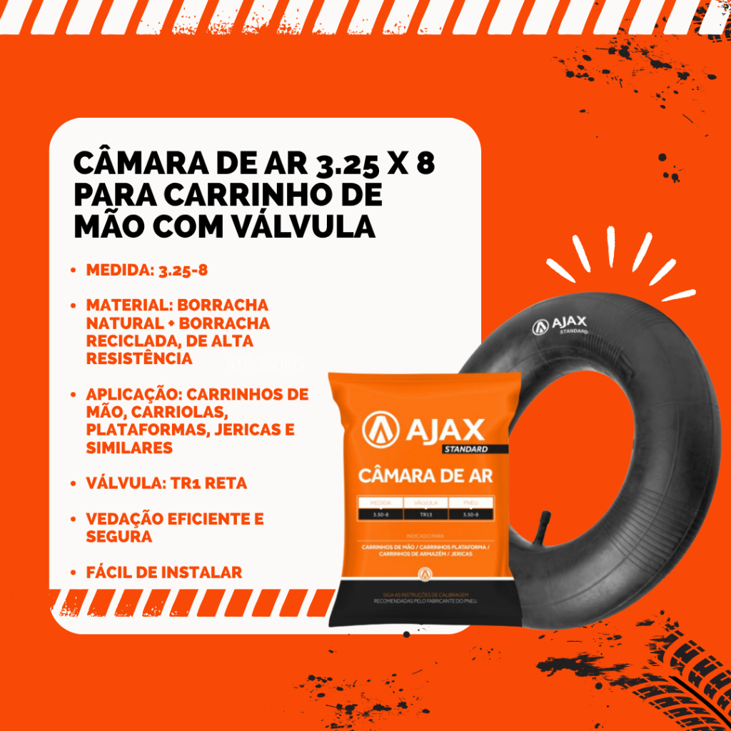 Kit 4 Câmaras de Ar 3.25-8 para Carrinho de Mão Válvula TR1