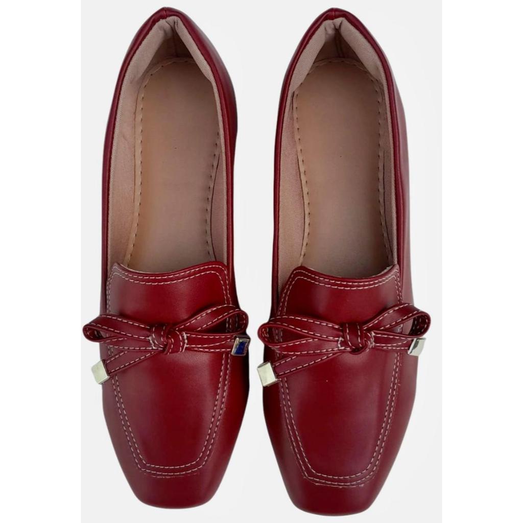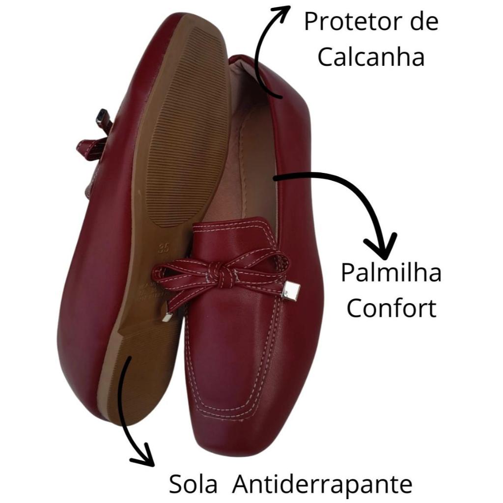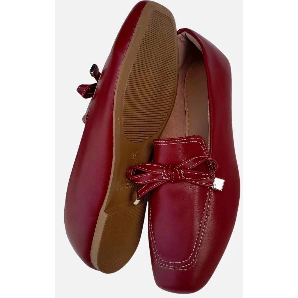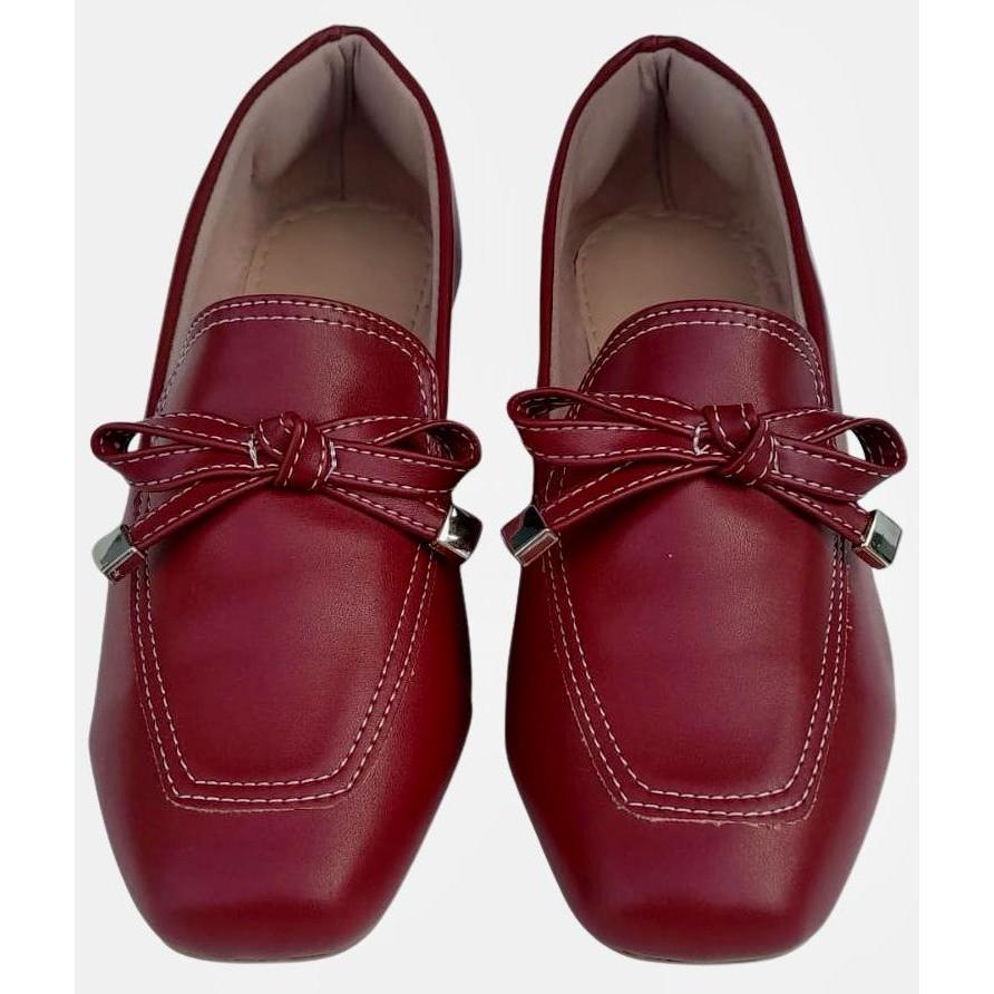 SAPATILHA FEMININA QUADRADA MOCASSIM FEMININO VERMELHO MARSALA COM DETALHE DE LACINHO
