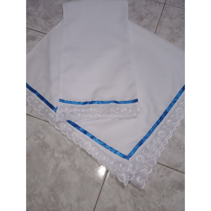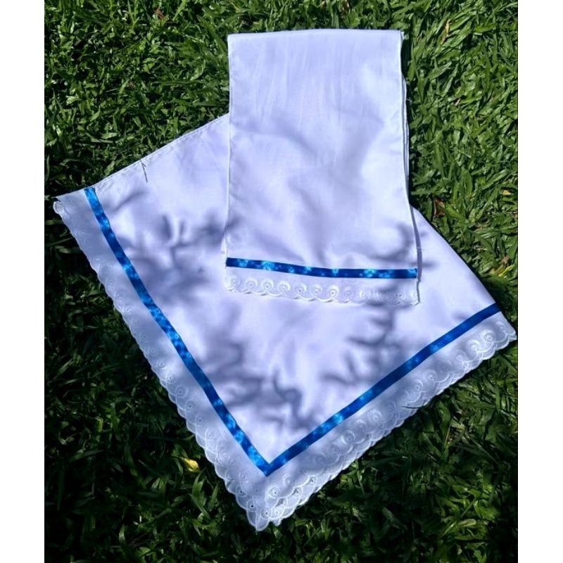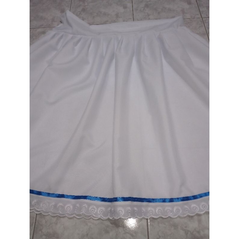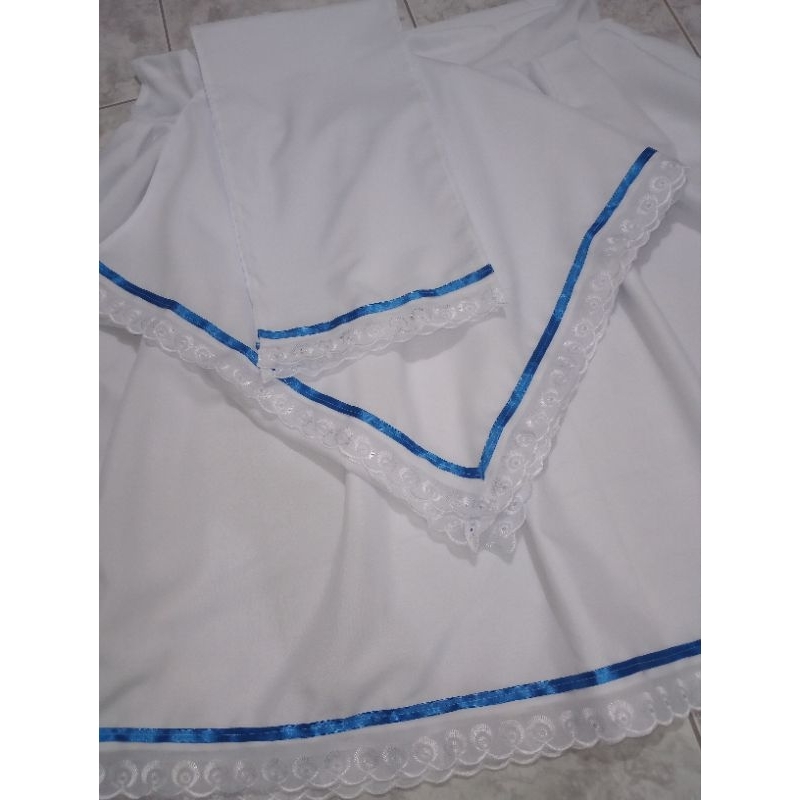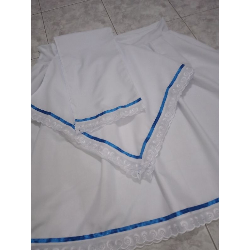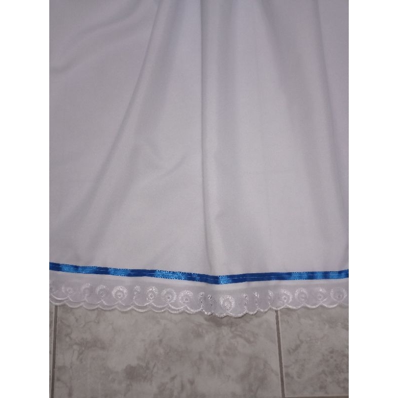 conjunto 3 peças saia Oxford umbanda e candomblé bordado inglês fita azul (azul Royal)