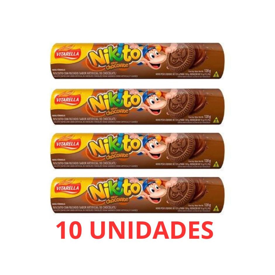 Biscoito/Bolacha Nikito Chocolate kit 10 pacotes