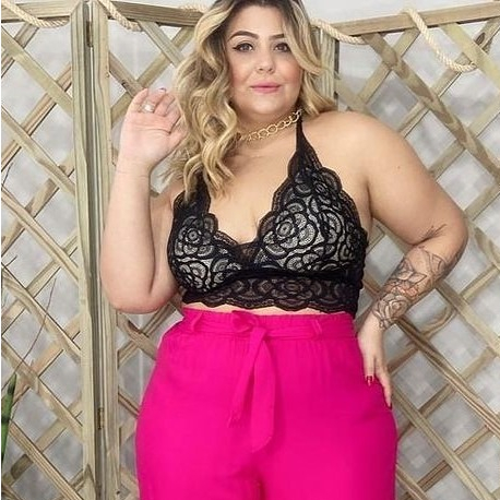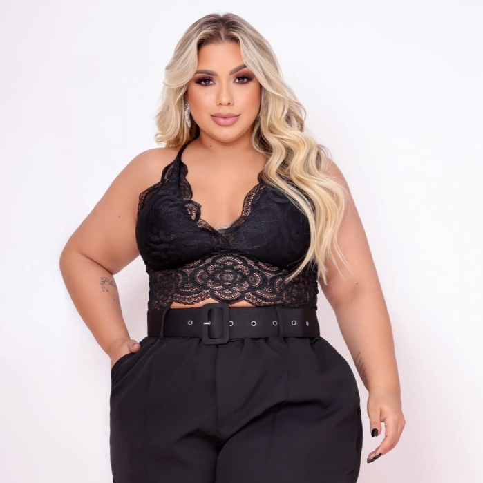 cropped top plus size blusa alça x com bojo rendado decote elegante festa tamanho grande