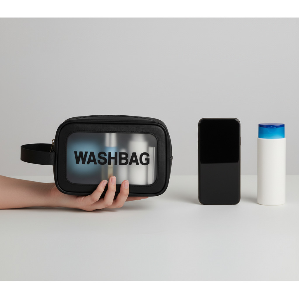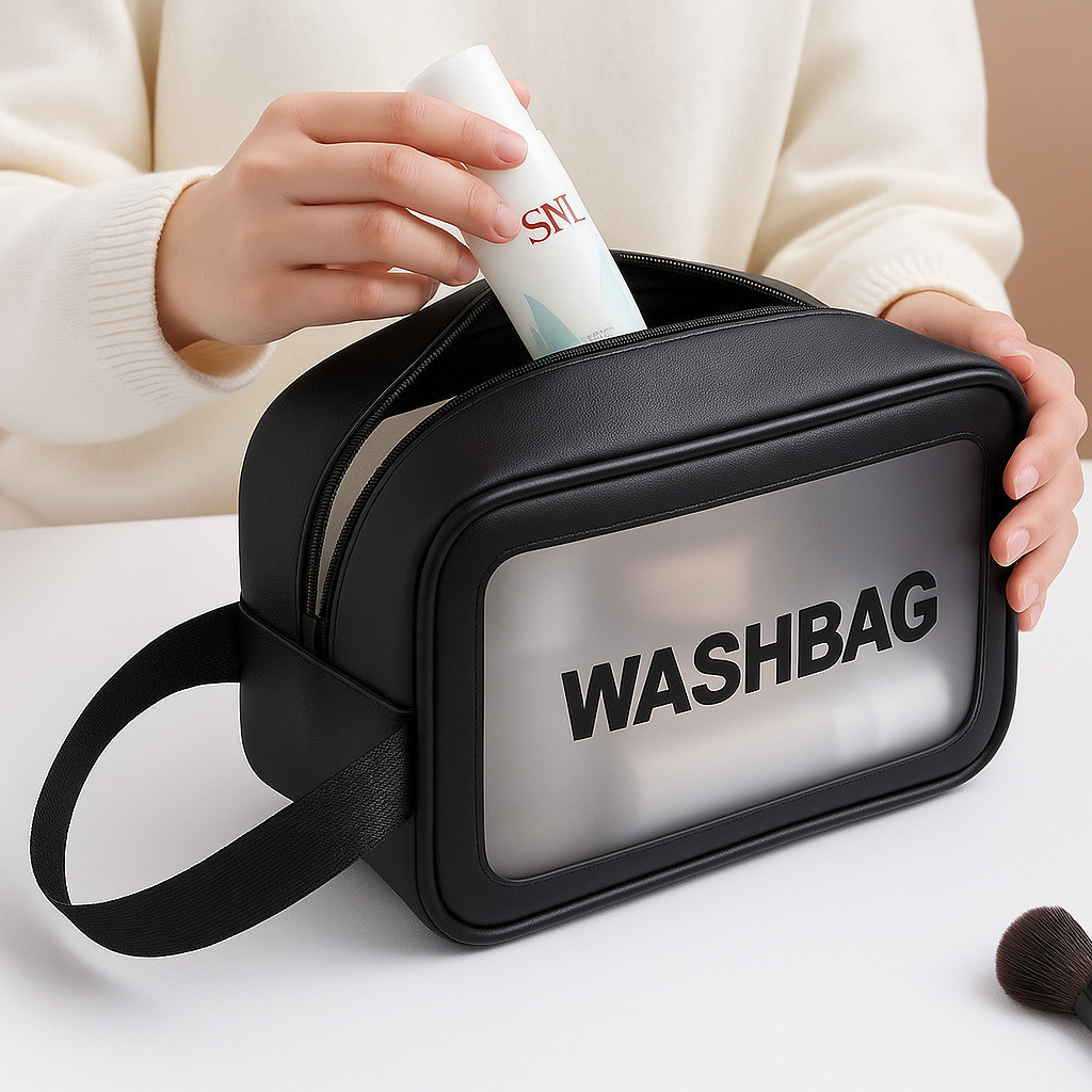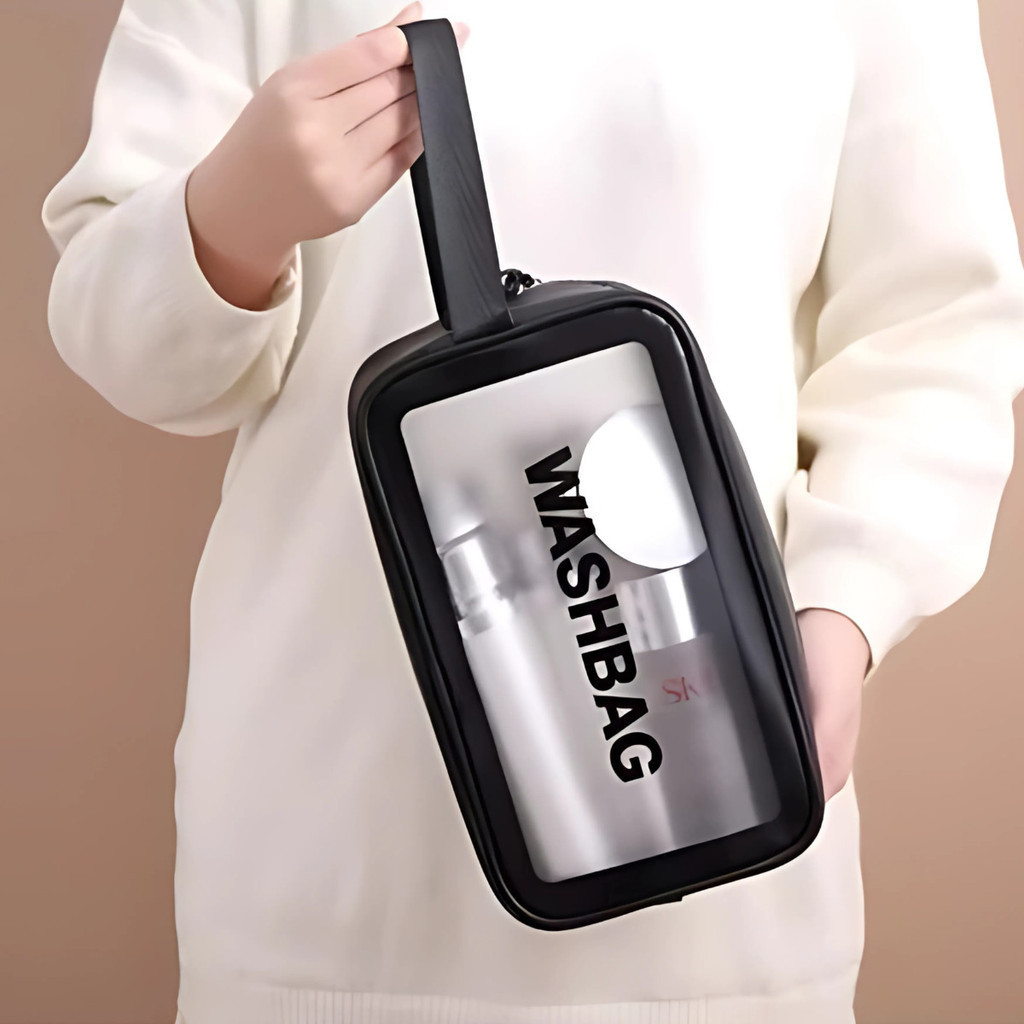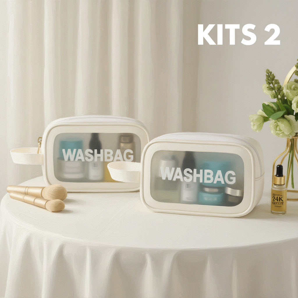 Kits 2 Washbag Necessaire Transparente PVC Impermeável Organizadora Maquiagem Viagem Higiene Pessoal Multiuso Grande