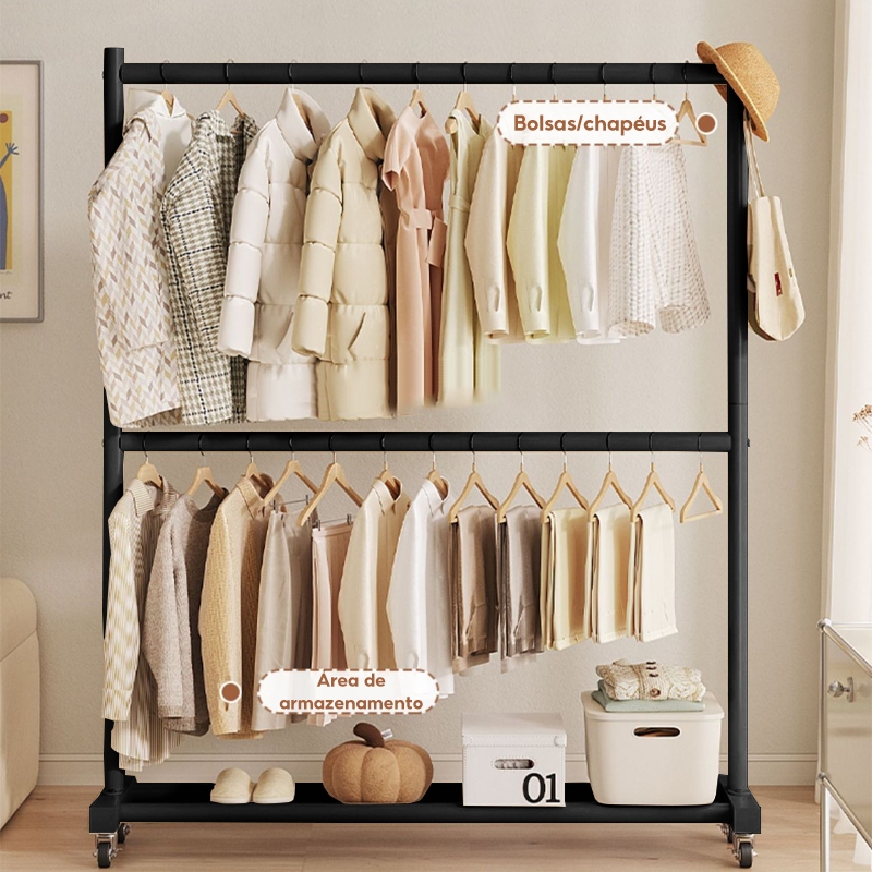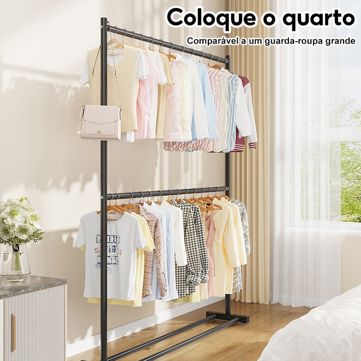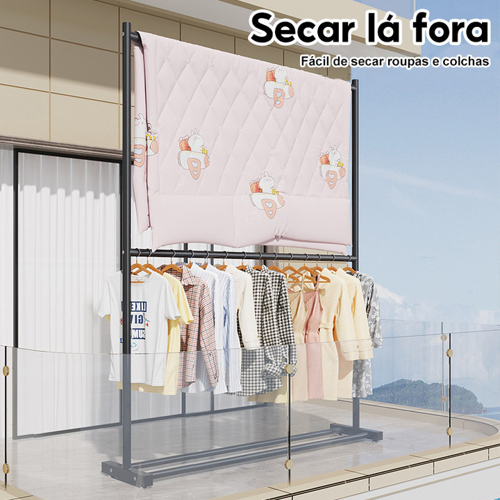 Arara de Roupas com Sapateira e Cabideiro–Ferro Resistente, Organizador Multiuso Estendal Para Secar Colchas