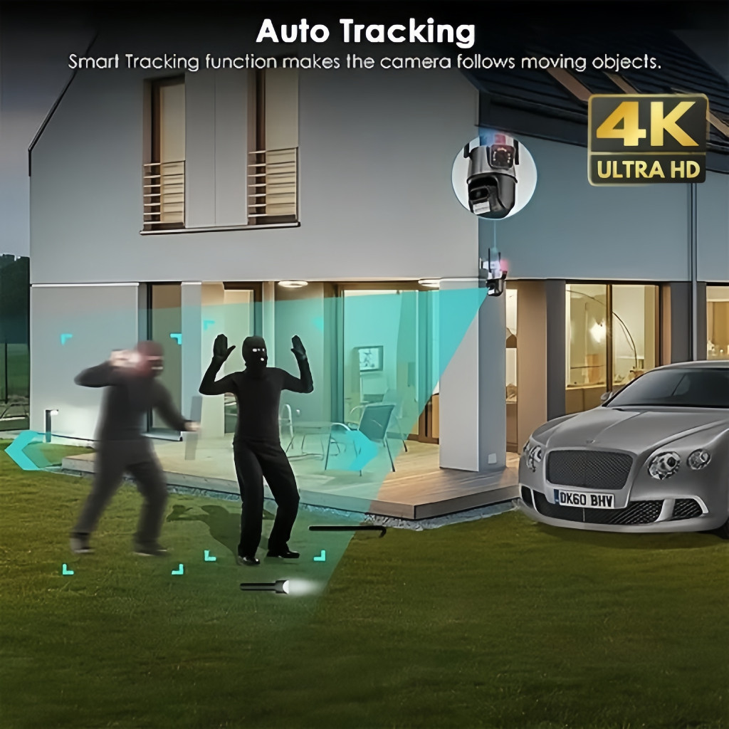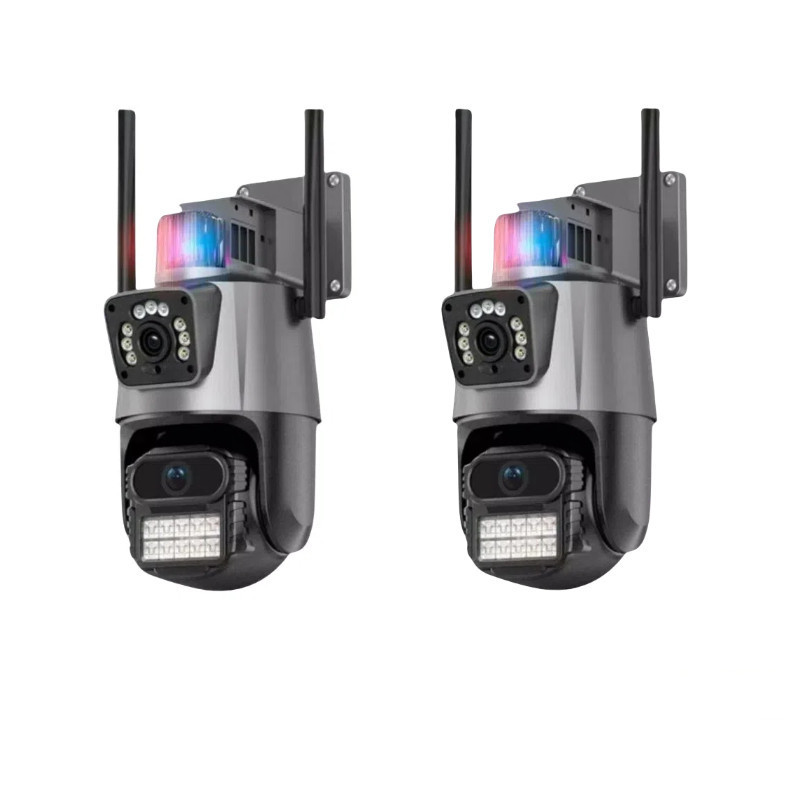 KIT4 Câmera De Segurança Externa Lente IC DuplaComSireneWifi 6mp Full Hd 4K 360graus Visão Noturna