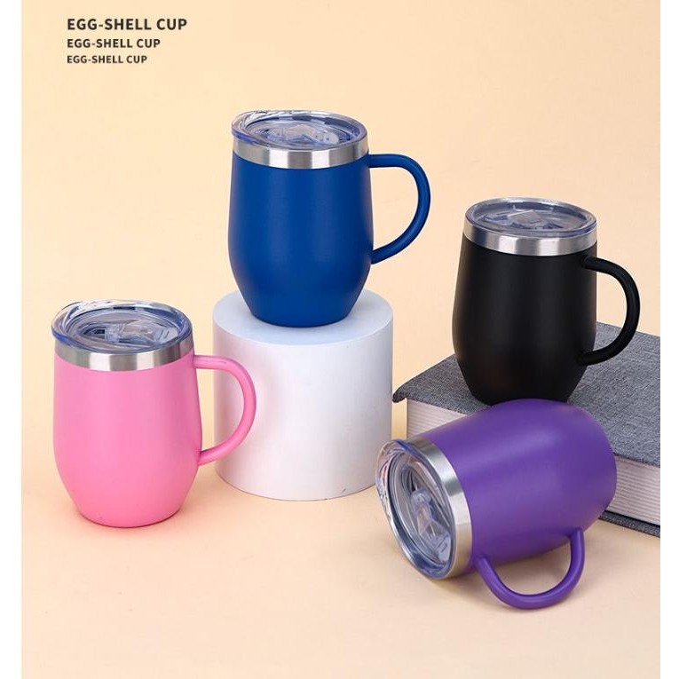 Copo de vinho tinto em formato de U com alça de casca de ovo, aço inoxidável 304, dupla camada, copo de café a vácuo