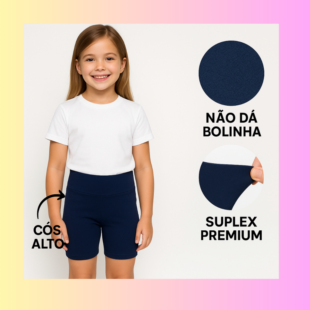 KIT C/3 BERMUDAS CICLISTAS INFANTIL JUVENIL SUPLEX ESCOLAR 4 AO 16