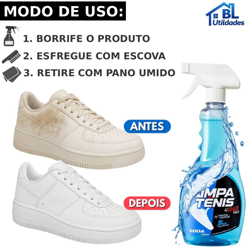 Limpa Tênis Premium Spray 500ml Remove com facilidade Manchas, Amarelado, Odores e Encardidos
