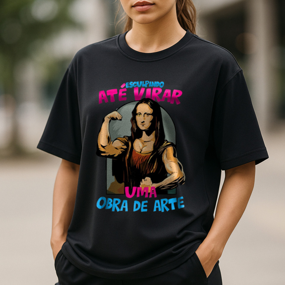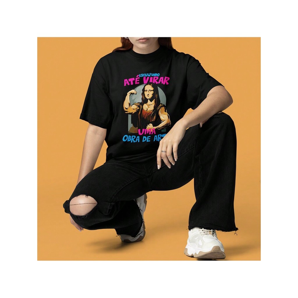 Camiseta Feminina Oversized Academia Monalisa Blusão T Shirt Roupa Estilosa Treino