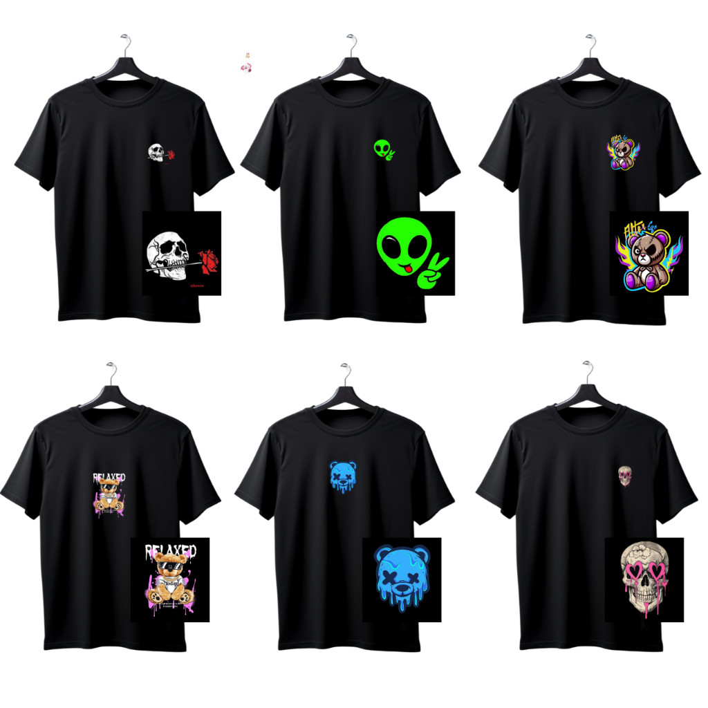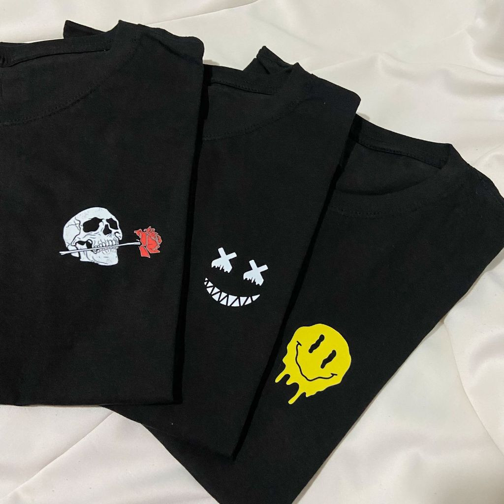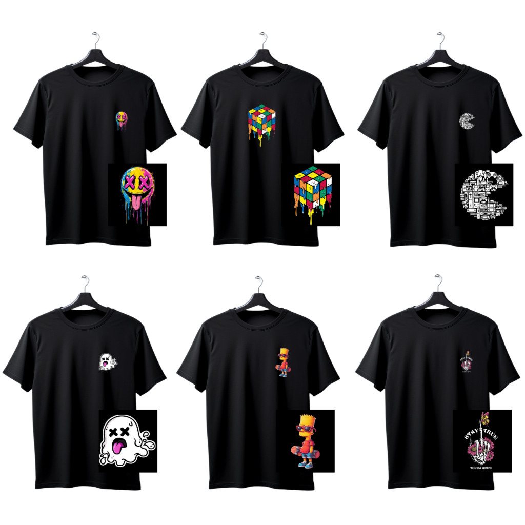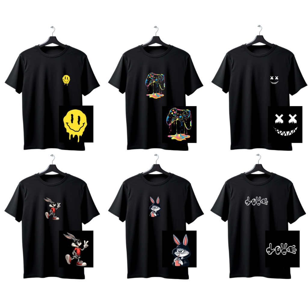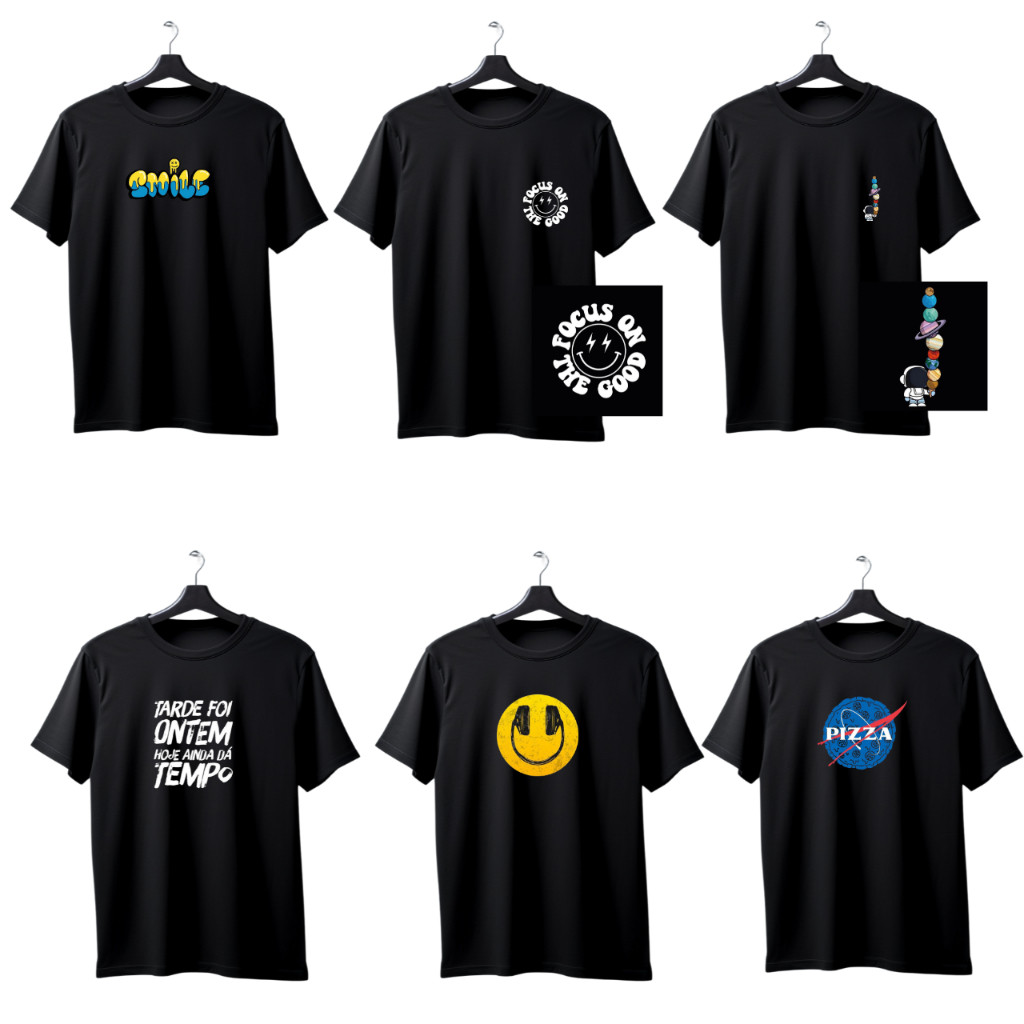 Kit 3 Camisetas Camisas pretas Masculina, adulto, Estampas Sortidas, Blusa 100% Algodão Streetwear MALHA 30.1 M,G,GG