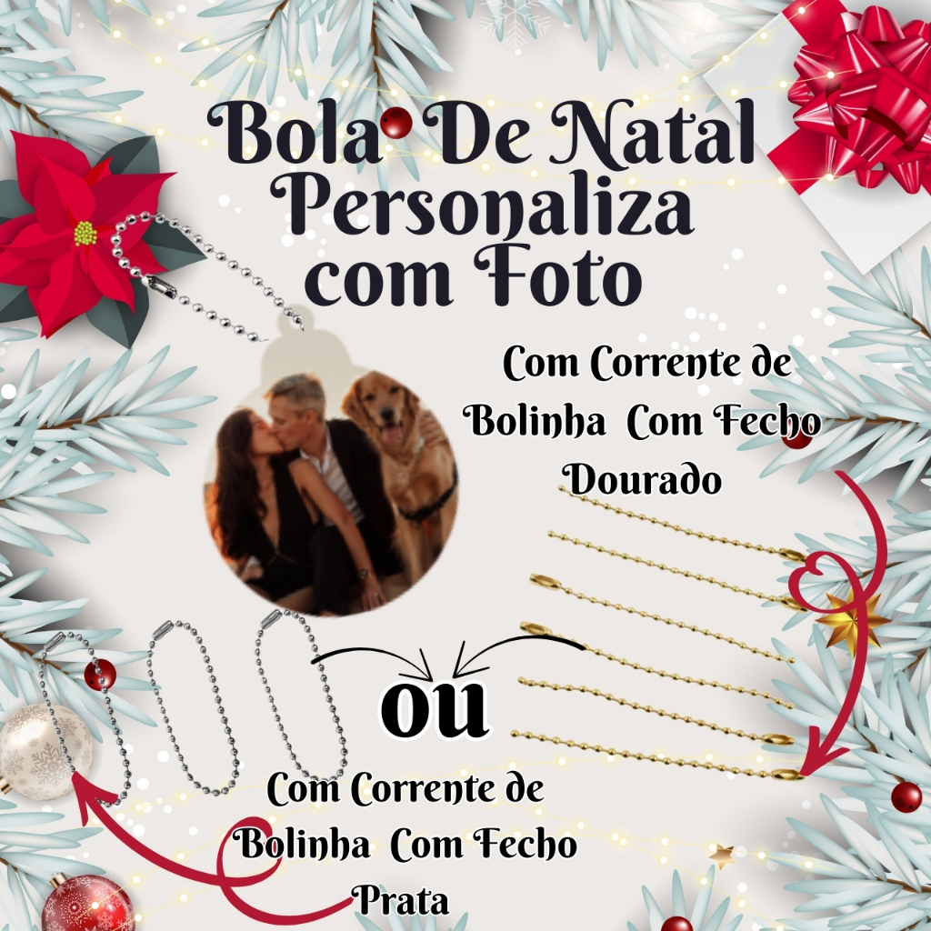 Bola de Natal Personalizada com Foto – Decoração Árvore de Natal Bola para Árvore com Foto