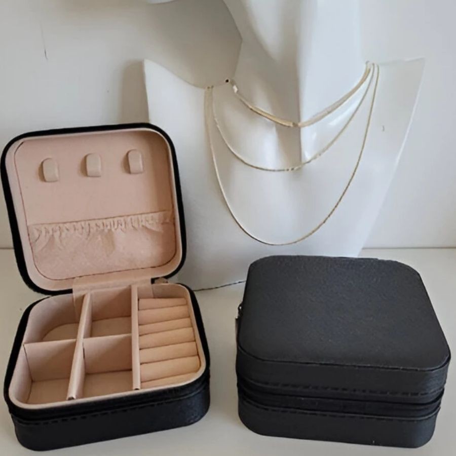 Caixa De Joias Couro Portátil Bolsa Necessaire Para Colar, Anel Brinco Organizador De Relógios 10x10