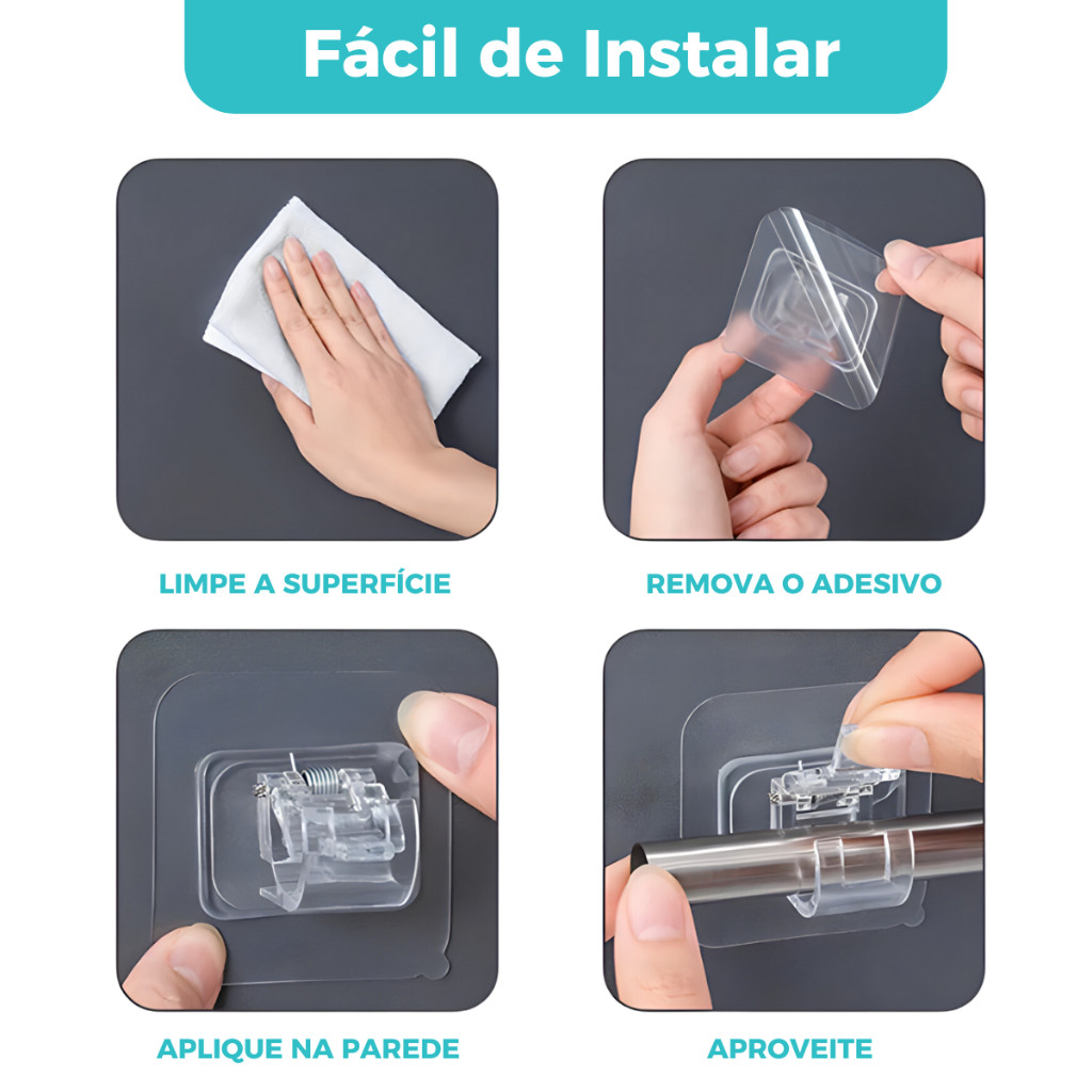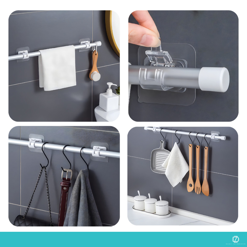 Suporte Para Barra de Cortina Adesivo Kit 2/4/6/8 Ajuste Fácil e Instalação Sem Pregos Sem Furo