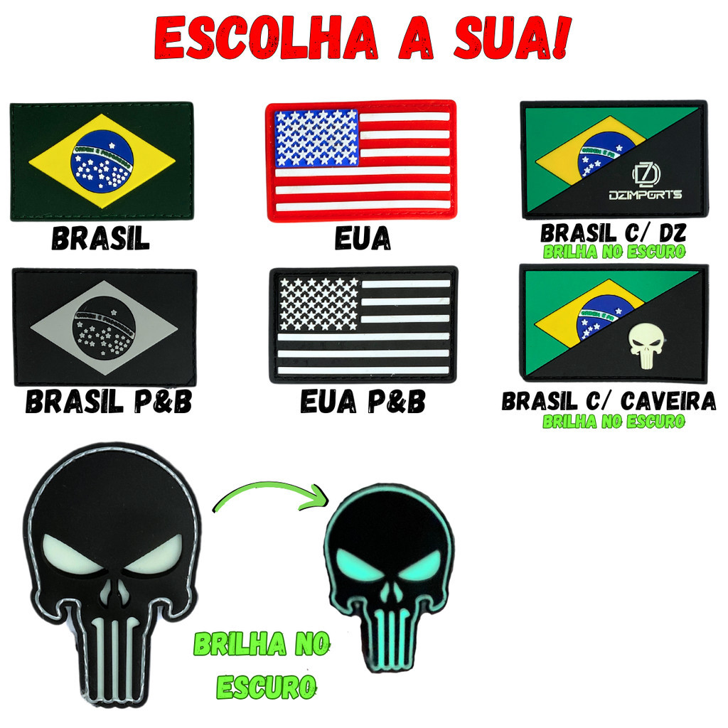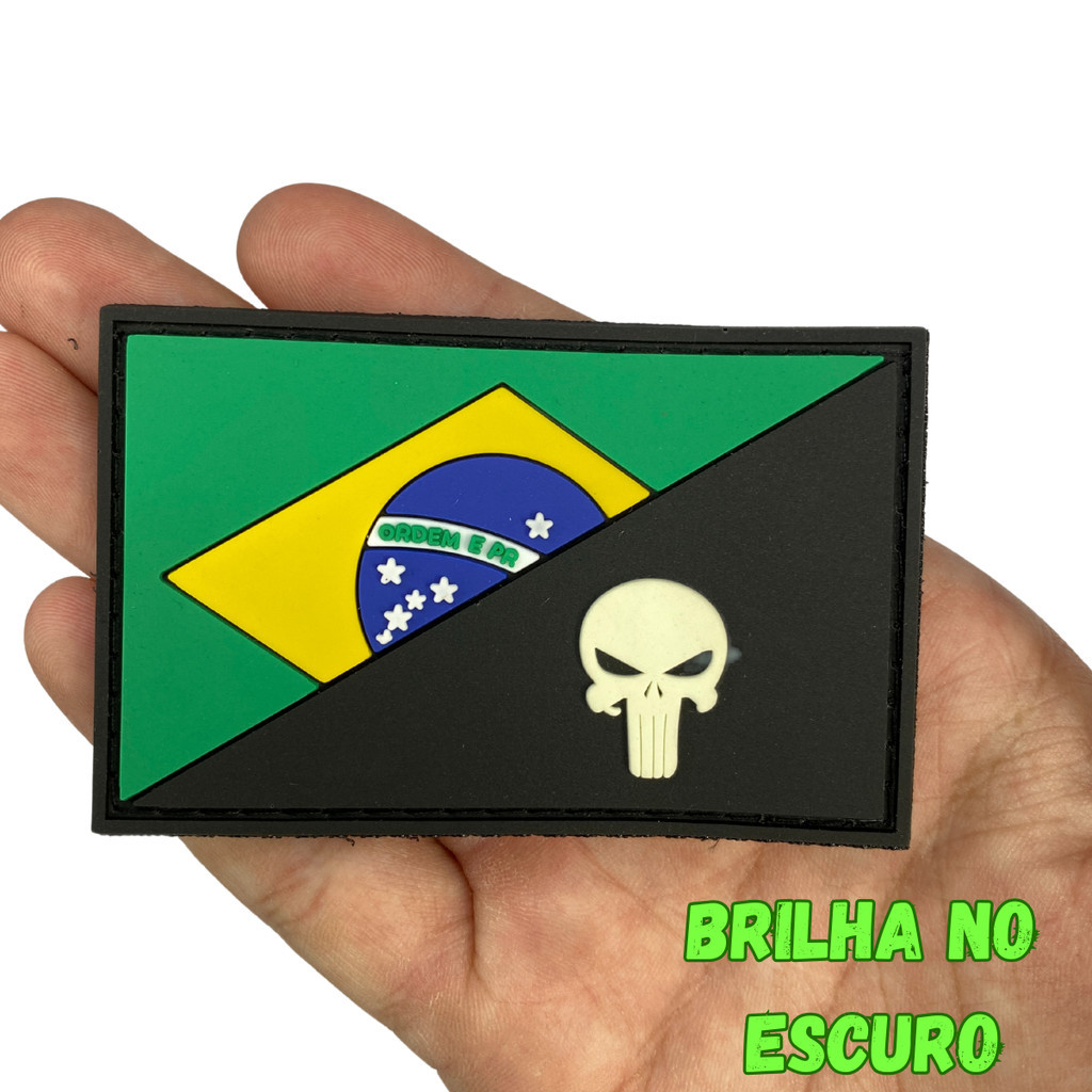 Patch Bandeira Emborrachada 3d Patch C/ Velcro Militar Tático Brasil Caveira USA Para Mochila Tática