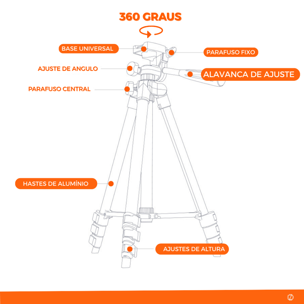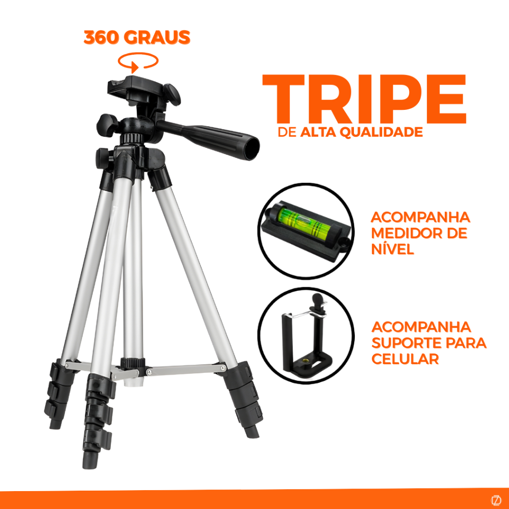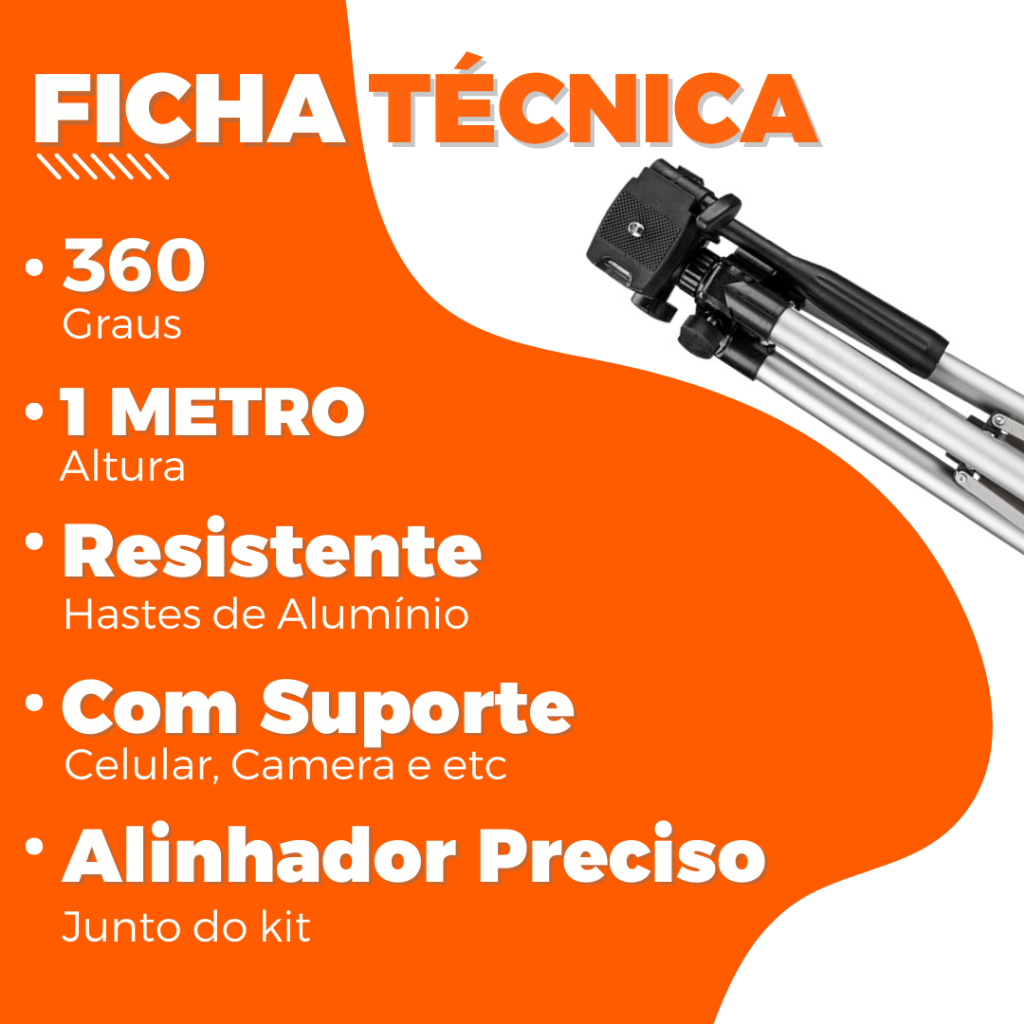 Tripe Universal 1,20m Com Nível Para Laser Cameras Celulares Foto Suporte Profissional Ajustável