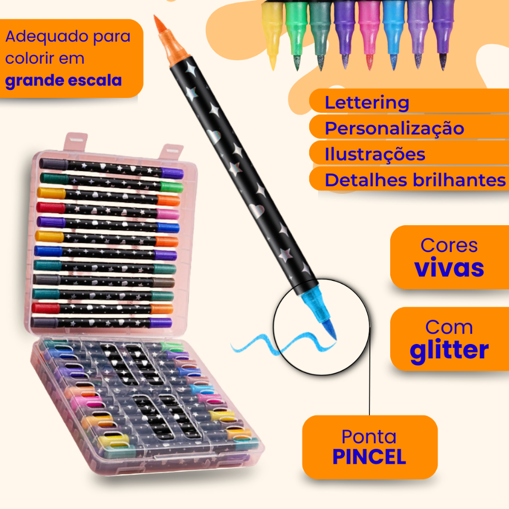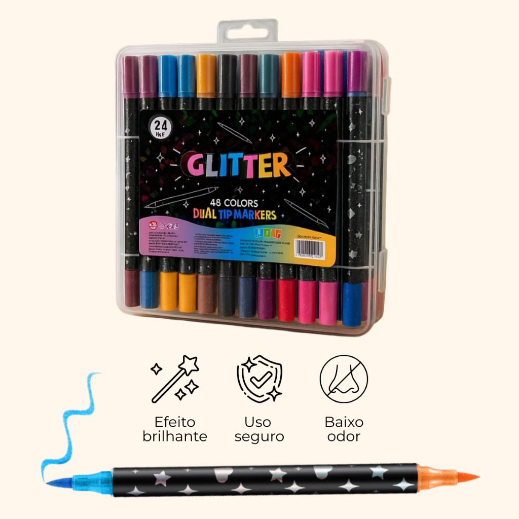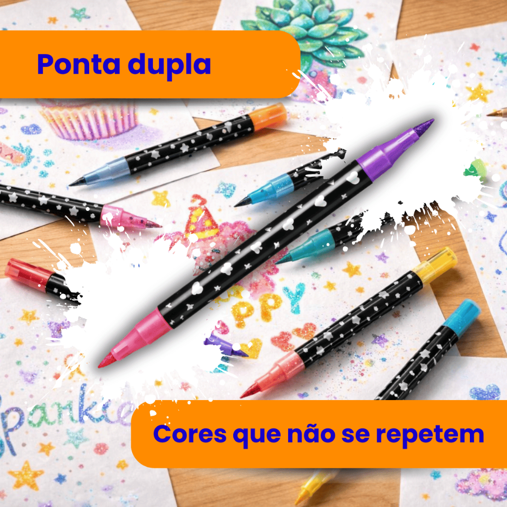 Caneta Marcadora Acrílica Glitter Metalizada Ponta Dupla para Colorir Brilhante 12/24/36/48/72 Cores