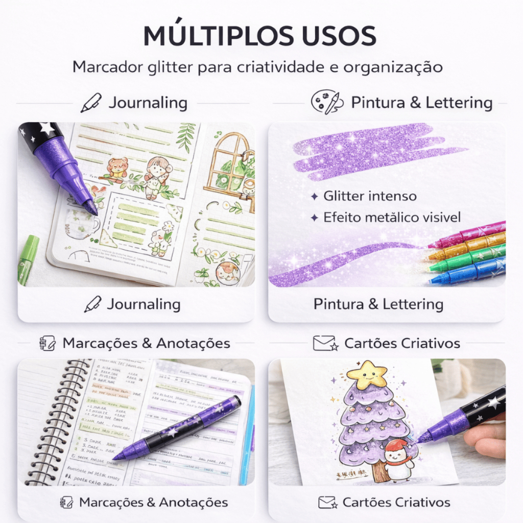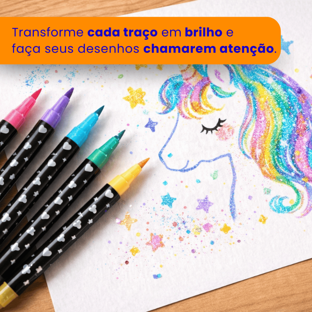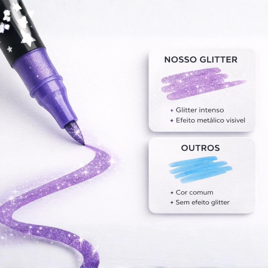 Caneta Marcadora Acrílica Glitter Metalizada Ponta Dupla para Colorir Brilhante 12/24/36/48/72 Cores