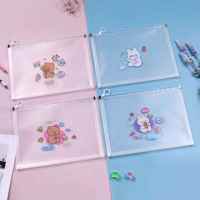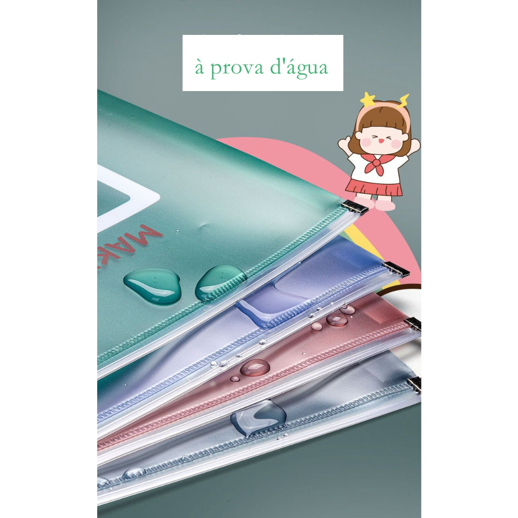 Kit com 4 peças pasta envelope com zíper A4 ,multiuso à prova d'água