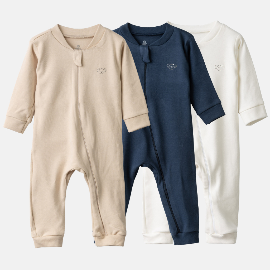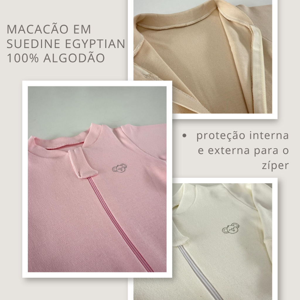 Kit 3 Macacão De Bebê Suedine 100% Algodão Egipcio Com Ziper Longo Rn/p/m/g/01
