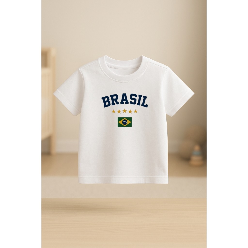 Camiseta Infantil Amarela Brasil – Em Algodão Confortável Estilo Copa Ideal para Copa, Jogos e Presente