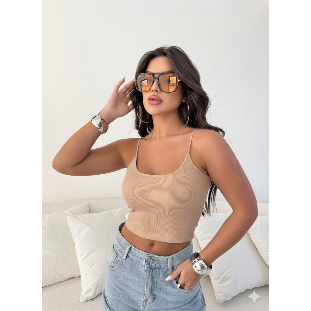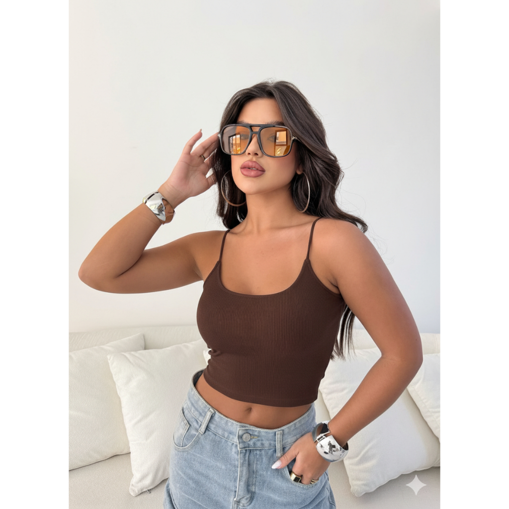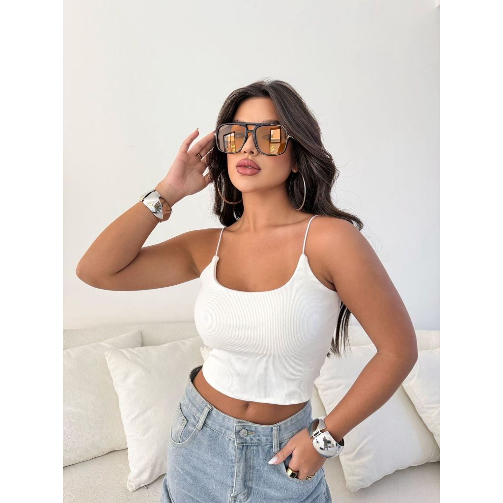 Blusa Cropped Alcinha Feminina Ribana Canelada Casual Básica Premium