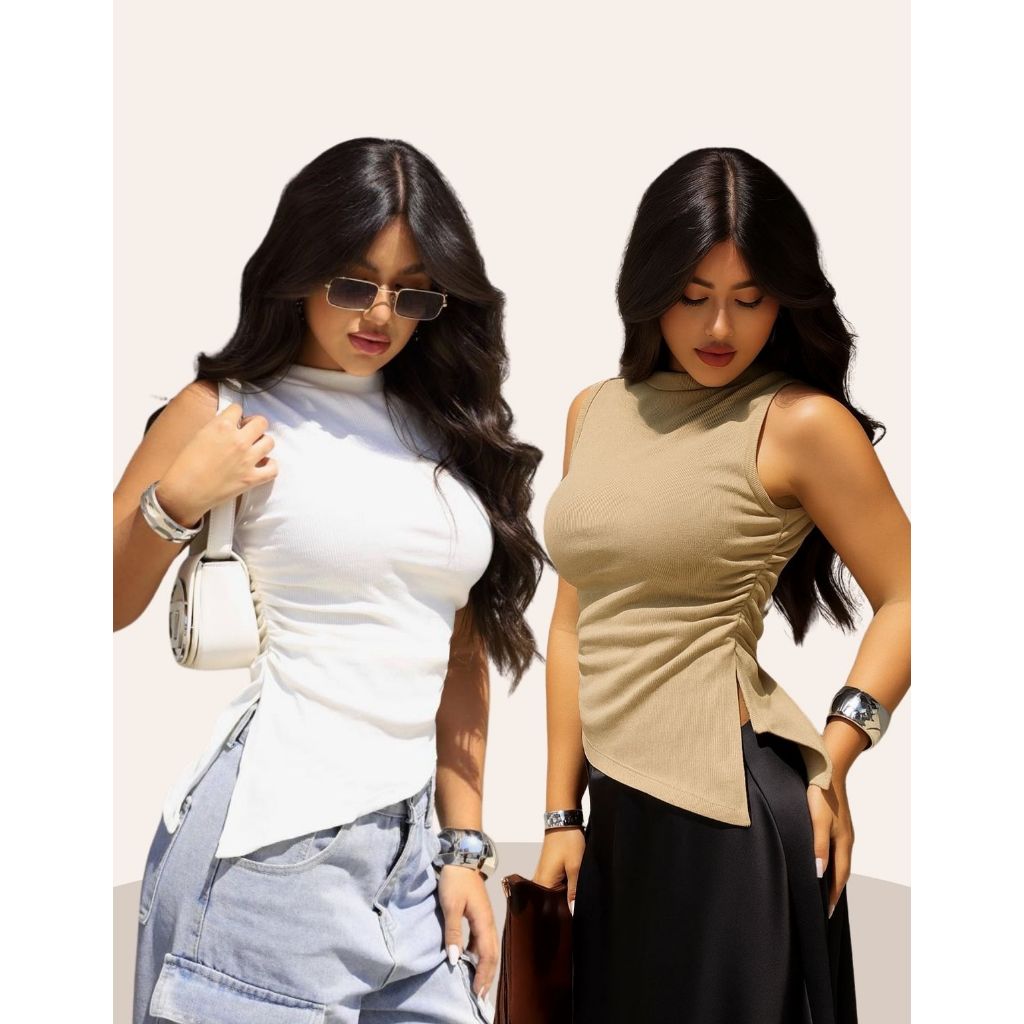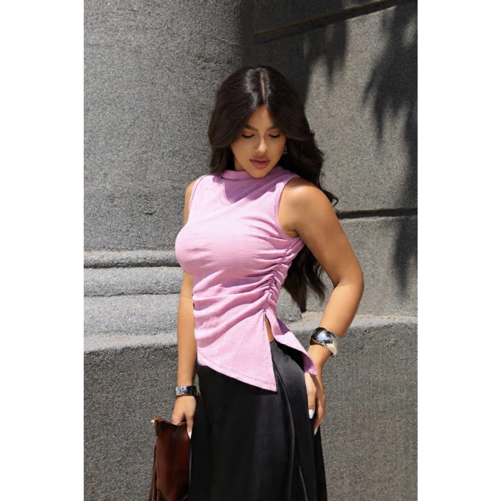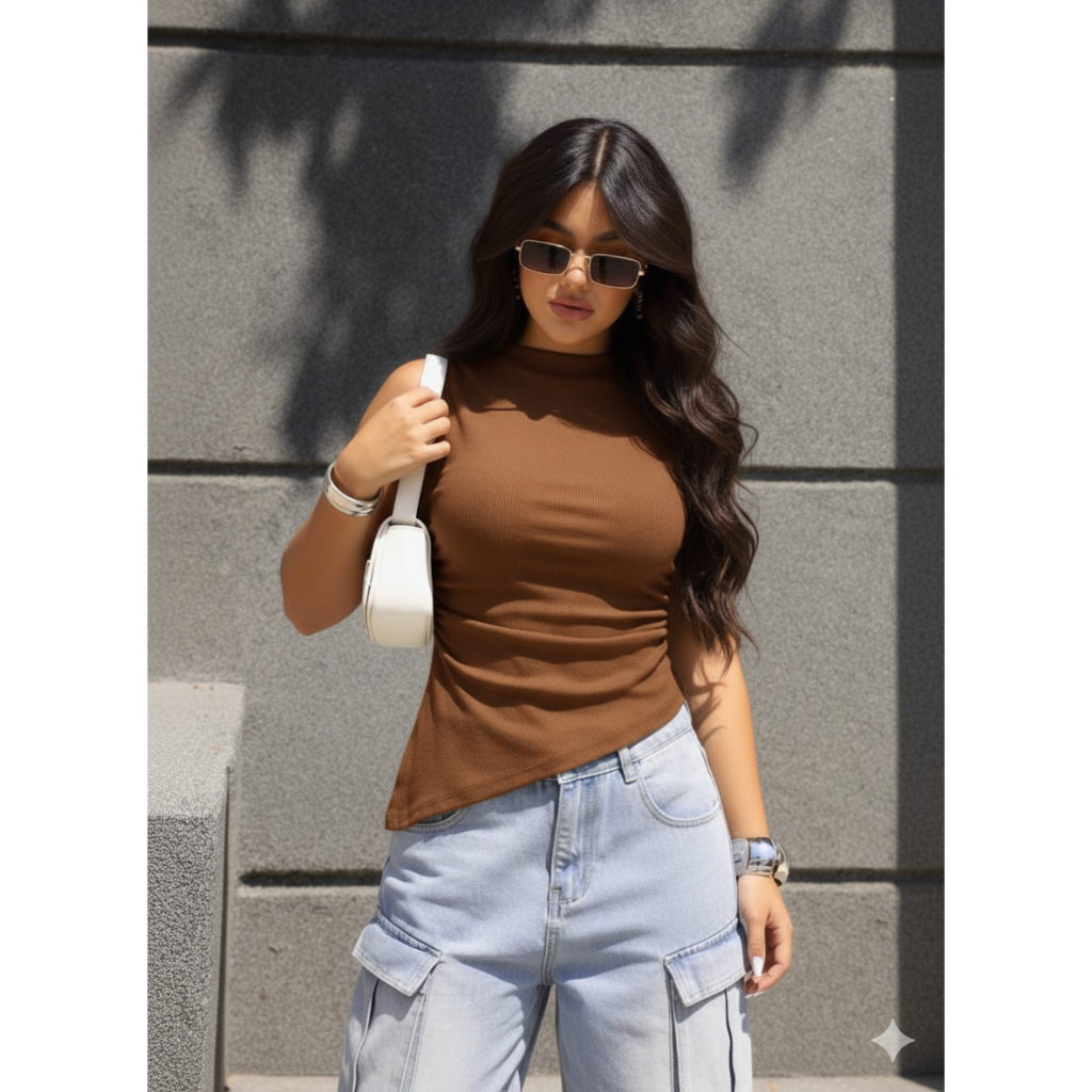 Blusa Assimétrica Feminina Ribana Canelada Casual Moderna Confortável Tendência