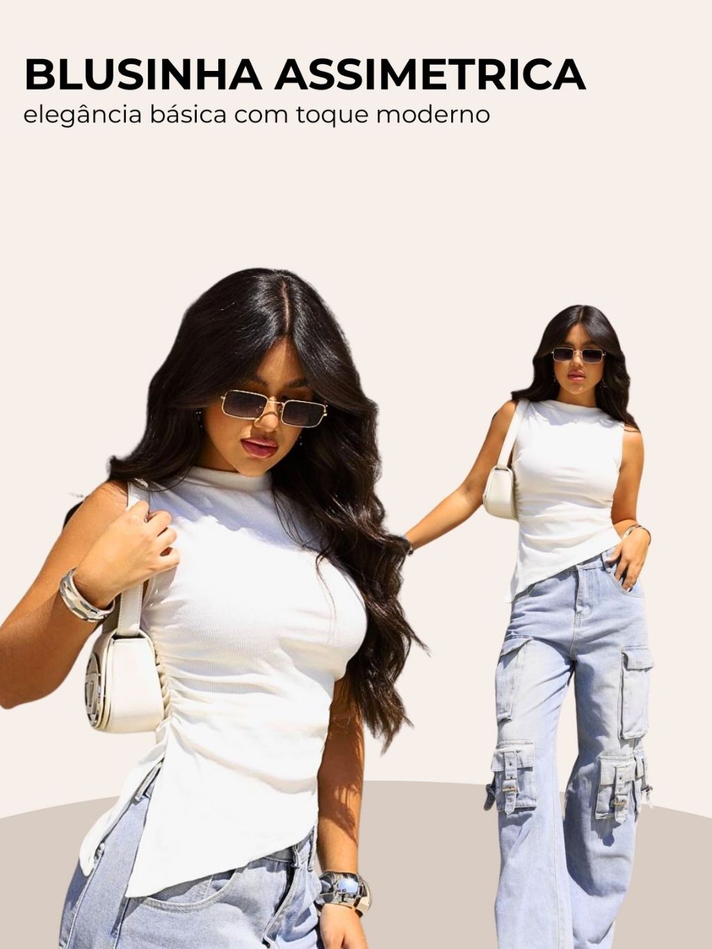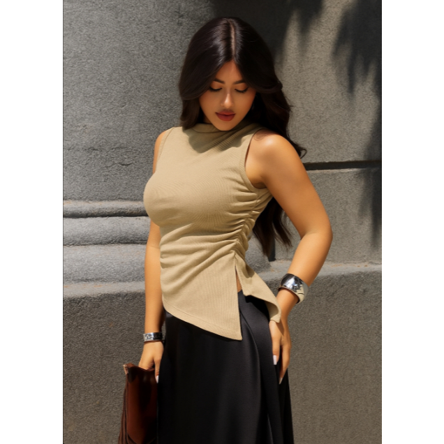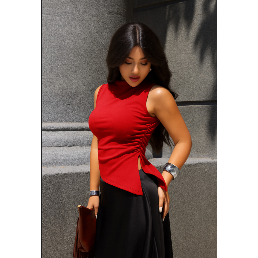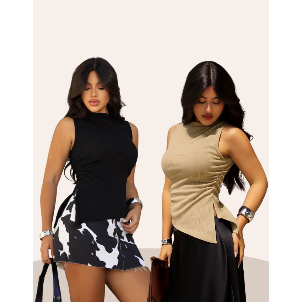 Blusa Assimétrica Feminina Ribana Canelada Casual Moderna Confortável Tendência